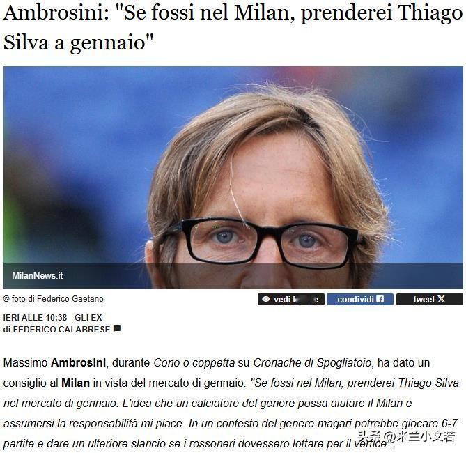 蒂亚戈·席尔瓦!米兰名宿安布罗西尼接受采访表示如果我是米兰的管理者,我会在这个冬季窗口毫不犹豫的迎回蒂亚戈·席尔瓦。我们也在期待蒂亚戈·席尔瓦的回归,从蒂亚戈·席尔瓦离开米兰,基本每次蒂亚戈·席尔瓦转会都会传出他重合米兰的消息,现在看这次是最有可能的,而且也是最后的机会了。 米兰名宿前米兰中场球员安布罗西尼接受采访表示我看到了蒂亚戈·席尔瓦的采访,他想在职业生涯最后时刻离开巴西,重新回到欧洲结束自己的职业生涯,我特别喜欢这样的想法,一个像蒂亚戈·席尔瓦这样的球员是能为一支球队提供足够的经验与稳定的,他如果回到米兰一定可以帮助米兰,米兰在争夺榜首时需要额外的动力,他能提供帮助。 世俱杯看蒂亚戈·席尔瓦有能力在米兰有一席之地,他的防守依然稳健,这次是蒂亚戈·席尔瓦自己在采访时候表示的,他想在冬季窗口离开巴西重返欧洲联赛,当时被问到米兰的时候,蒂亚戈·席尔瓦说的是米兰一直都是自己爱的球队,他一直都是米兰球迷,后来才有的米兰与蒂亚戈·席尔瓦的接触,但接触后就没有了后续,估计俱乐部有俱乐部的顾虑,估计安布罗西尼是在变相喊话米兰俱乐部。