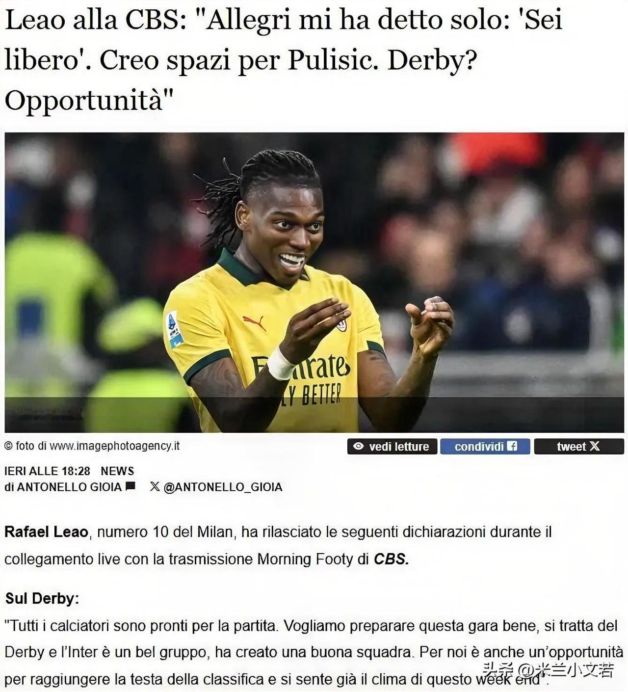 莱奥谈阿莱格里进攻战术。莱奥接受采访表示阿莱格里的进攻战术十分简洁,我与普利西奇搭档锋线,阿莱格里对我的要求是当我拿球的时候我可以自由发挥,当普利西奇拿球时候我需要帮忙去拉开防守。 这个战术确实是简洁啊,和咱们中后场的层次分明的防守战术相比较这不仅仅是简洁的问题,这个有点简陋了,但这个战术貌似和我们看到的差不多,锋线球员都可以自由发挥,莱奥有空挡把球给莱奥突破,莱奥没空间让普利西奇单打,实在不行福法纳插上来一脚。 这个战术貌似也能解释为啥恩昆库和希门尼斯现在低迷,希门尼斯没有莱奥的突破能力,也没有普利西奇的单打能力,所以希门尼斯只能在锋线作为策应者,每场跑动12公里,恩昆库和希门尼斯一样,但恩昆库跑动能力还不行,肋部突击能力现在看不到,跑动能力也不行,恩昆库在场上看起来毫无作用貌似也能说的通了。