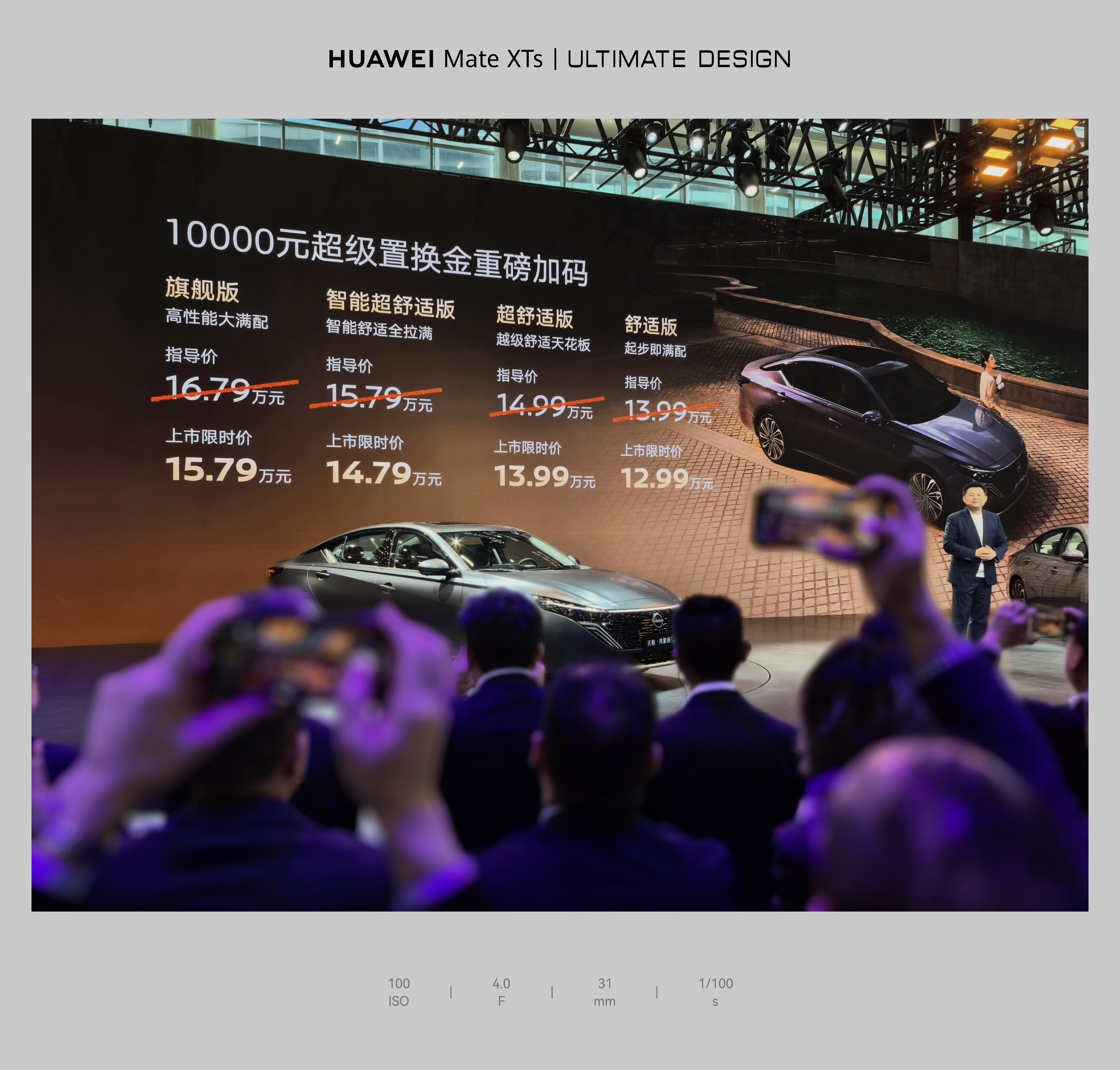 东风日产真的是转型很快的合资了,天籁成了燃油车里唯一的鸿蒙座舱产品,包括车机和 HUAWEI SOUND 都在。甚至发布会也和新势力学习了,先出价格再来一个新价格,以及各种「免费送」