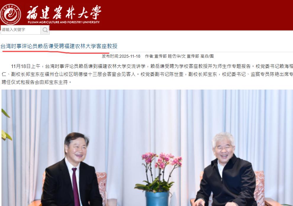 不让统派流血又流泪!据最新消息报道,2025年11月18日,福建农林大学正式聘用赖岳谦为客座教授,校长兰思仁亲自为他颁发聘书、佩戴校徽,这场聘任仪式让无数人为之动容。 在福建农林大学的聘任仪式现场,赖岳谦接过烫金聘书时,特意将校徽别在西装左胸靠近心脏的位置——这个动作,他在台湾政治大学任教时,每天走进教室前也会做,只是那时别着的校徽,后来被校方以“不符合教学立场”为由收回。 2023年深秋,赖岳谦的工作电脑突然弹出系统崩溃提示,维修人员打开主机后发现,硬盘被植入了恶意程序,里面他多年研究两岸关系的手稿荡然无存。三天后,学校人事处通知他:“你的副教授聘期不再续聘”,理由是“教学内容与学校发展方向不符”。 中时电子报社长的职务被免去时,他正在撰写一篇分析“台独”分裂行径危害性的社论。报纸总编辑在电话里支支吾吾:“上面打招呼了,你的名字不能再出现在版面上。”挂断电话,赖岳谦看着窗外台北灰蒙蒙的天空,第一次萌生了离开的念头。 绿营网军的骚扰像附骨之疽。妻子的购物记录被曝光在网络论坛,女儿就读的小学门口突然出现“统派子女滚出台湾”的标语,家门口的信箱里,除了恐吓信,偶尔还会塞进来装着死蟑螂的信封。 “我不是第一个,也不会是最后一个。”赖岳谦曾在一次统派聚会上说,那时他还能勉强维持表面的平静,但当女儿哭着问“爸爸,为什么他们说我们是坏人”时,他知道自己不能再让家人跟着担惊受怕。 当台湾的学术讲台对他关闭时,大陆的高校主动递来了橄榄枝;当绿营分子试图用恶意淹没他的声音时,祖国的土地成为了他最坚实的盾牌。国台办发言人在例行记者会上的表态掷地有声:“统派人士的爱国情怀,祖国永远不会忘记。” 赖岳谦的籍贯是福建上杭,祖父那辈从大陆迁居台湾。这次回到福建任教,他特意带着女儿去了上杭祖籍地,在祖屋的老槐树下,女儿摸着树干问:“爸爸,这里的人会对我们好吗?”村民们递来的热茶和笑脸,给出了最温暖的答案。 这场跨越海峡的聘任,像一面镜子,照出了两岸不同的生态。在台湾,统派人士的社交媒体上,赖岳谦的照片被频繁转发,配文多是“这才是真正的归宿”;而绿营媒体则刻意淡化此事,却掩盖不住评论区里“为何容不下不同声音”的质疑。 当一个坚持统一的学者在自己的家乡连三尺讲台都保不住,这样的“自由民主”,究竟是谁的遮羞布?赖岳谦的经历撕开了民进党“言论自由”的假象——他们所谓的“多元”,只容得下“台独”的叫嚣,容不下统一的声音。 大陆用实际行动证明:支持统派从不是空洞的口号。福建农林大学为赖岳谦成立了“两岸关系研究中心”,配备了研究团队;厦门、上海等地的高校也纷纷发出邀请,请他担任讲座教授。这些举动,是给所有爱国统派人士的一颗定心丸。 赖岳谦在聘任仪式上的发言很简短:“我只是做了一个中国人该做的事,却得到了这么多支持。”话音刚落,台下响起的掌声持续了近一分钟,许多师生眼里含着泪——这掌声里,有敬佩,更有对民族统一的深切期盼。 任何试图割裂民族血脉的行径,终将被历史唾弃。当赖岳谦在福建的讲台上重新讲述两岸关系时,当他的女儿在大陆的校园里安心读书时,这本身就是对“台独”分裂势力最有力的回击:统一的大势,从来不是少数人能阻挡的;爱国的力量,永远比仇恨更坚韧。