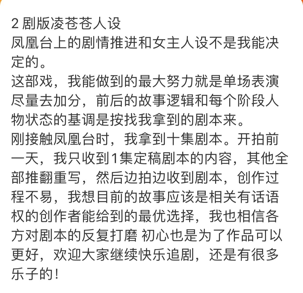 彭小苒发长文回应凤凰台上像东宫,还说开拍前只收到1集定稿剧本,只能说男女主都被做