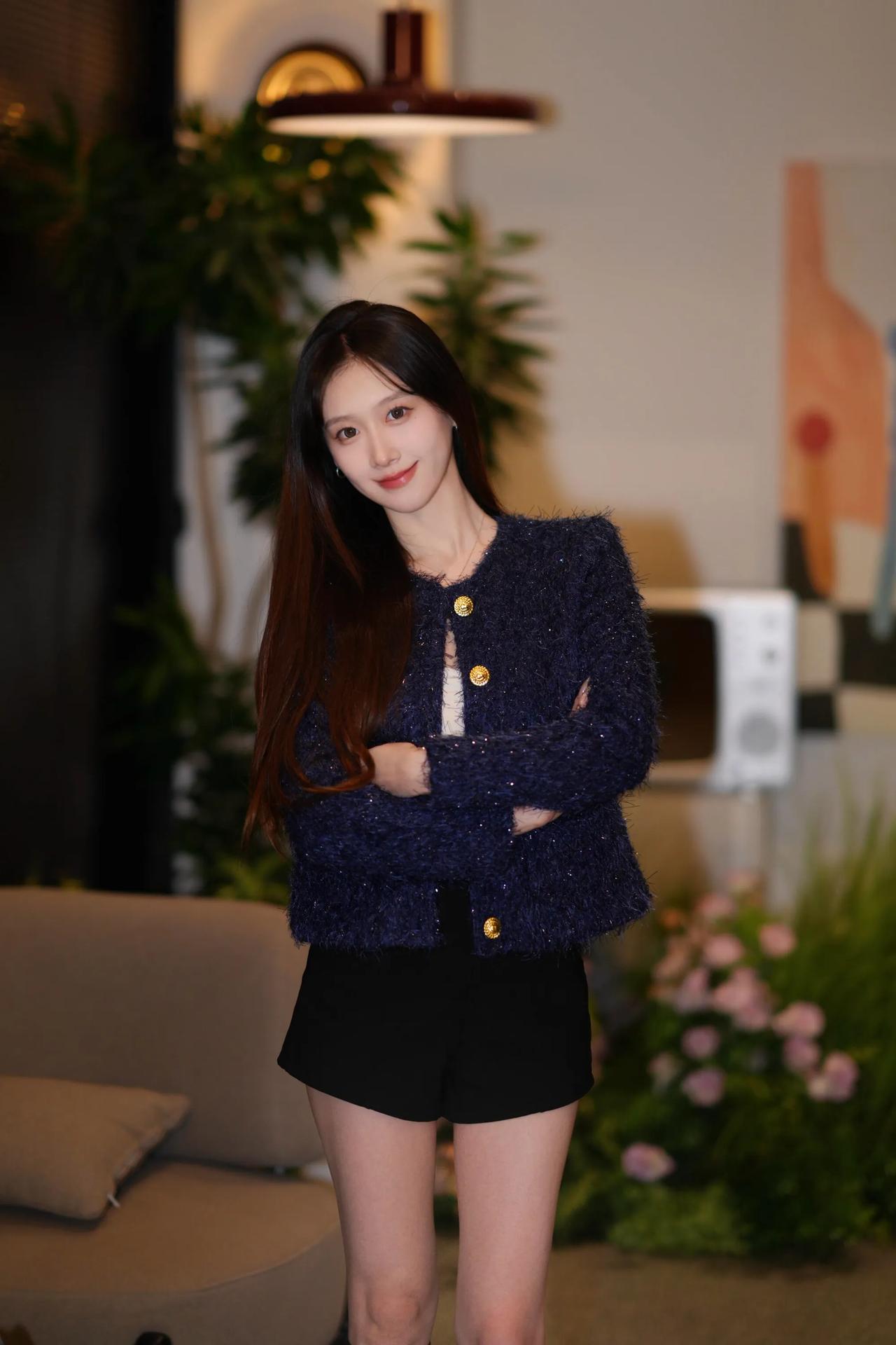 圣诞氛围满满,美少女与圣诞玩偶同框,超甜!