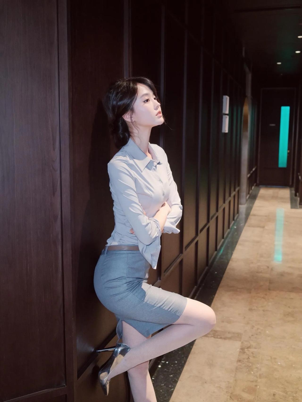 白衬衫,百褶短裙,搭配丝袜和高跟鞋,享受午后慵懒时光。
