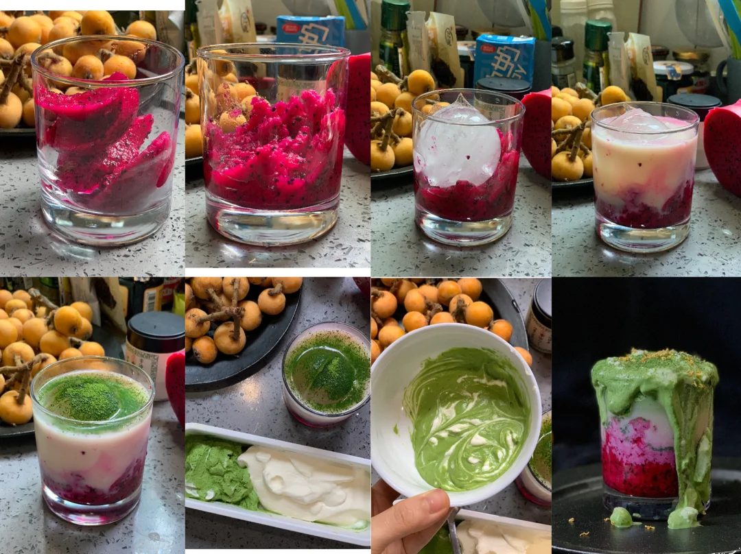 火龙果豆奶拿铁➕抹茶芝芝奶盖🌿清爽夏饮