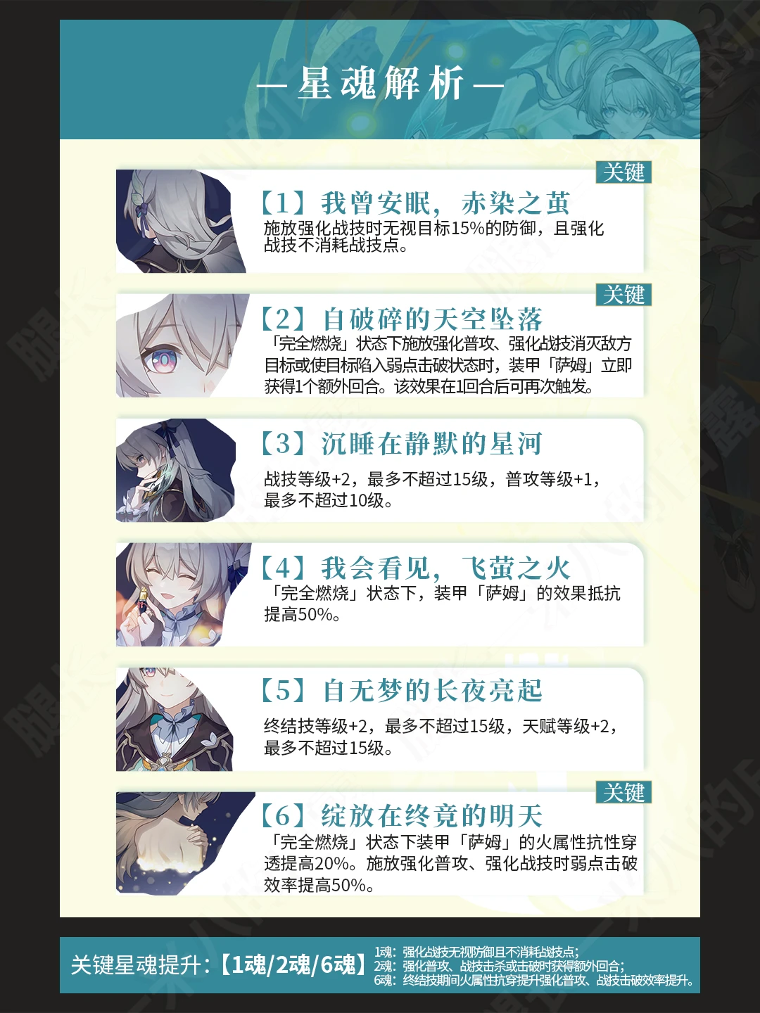 6魂(终结技期间火属性抗穿提升强化普攻、战技击破效率提升。)