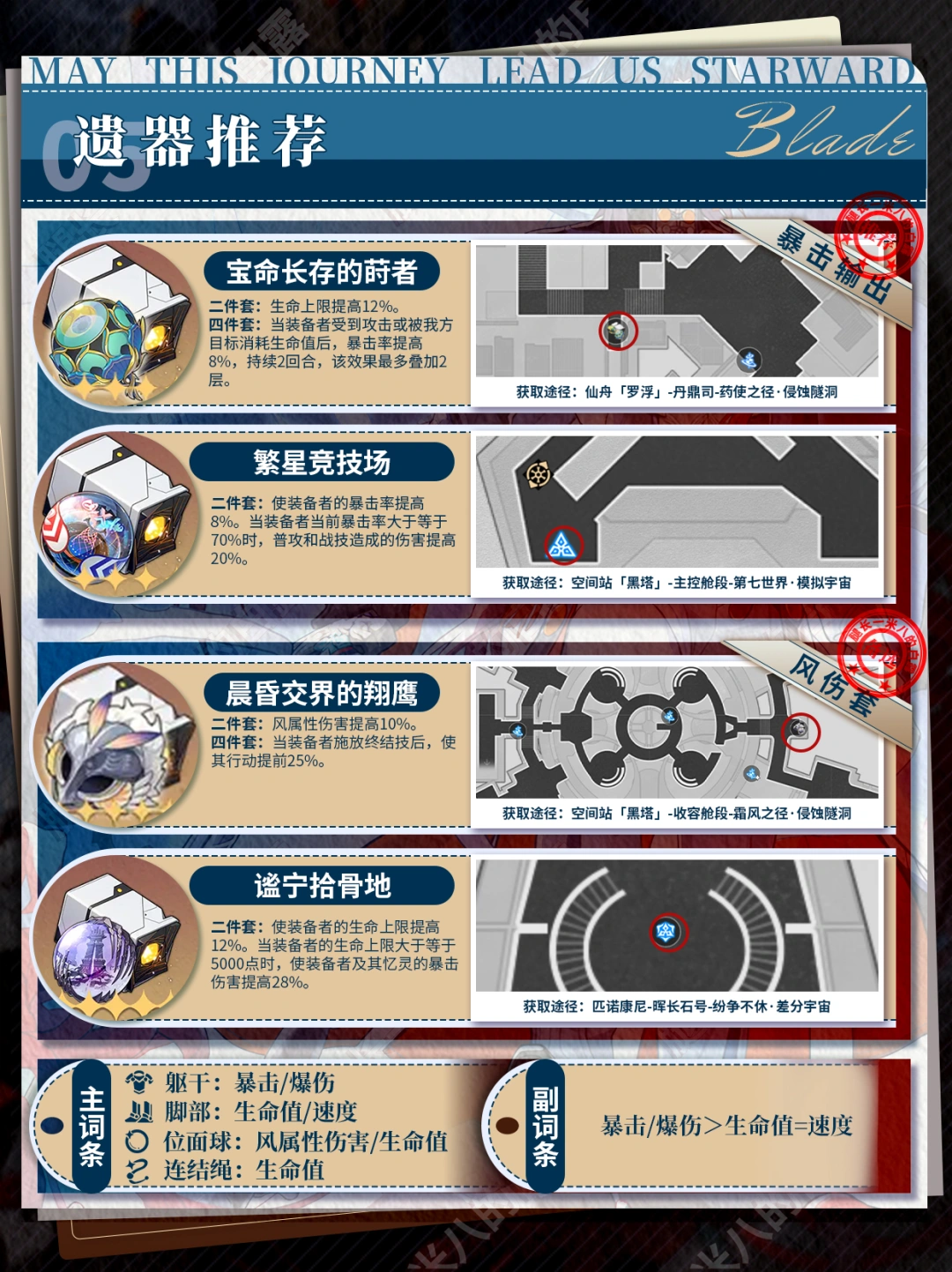二件套:使装备者的暴击率提高8%。当装备者当前暴击率大于等于70%时,普攻和战技造成的伤害提高20%。