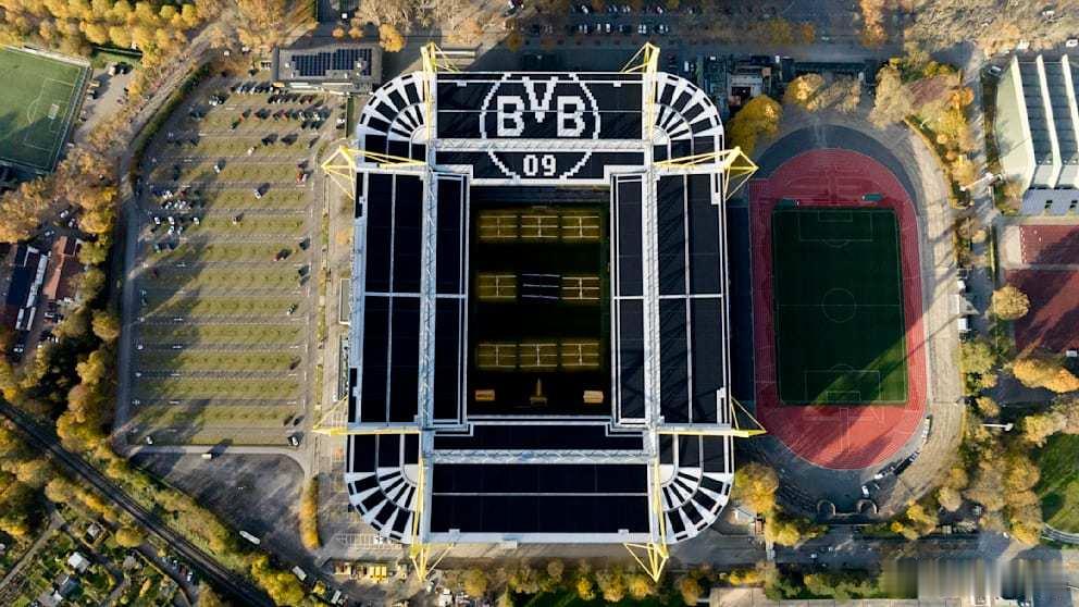 多特蒙德和能源合作伙伴RWE一起合作,在主场屋顶用11132块太阳能板,简称超级大型光伏太阳能发电站,总发电容量超过5兆瓦,这是全球在体育场屋顶上能量最强的光伏系统,该记录被德国纪录机构承认。预计未来多特蒙德主场最多一半的用电都会由这套系统供给,球场将会在明年初安装3.7兆瓦时的电池储能系统,每年节省大约1700顿二氧化碳排放。