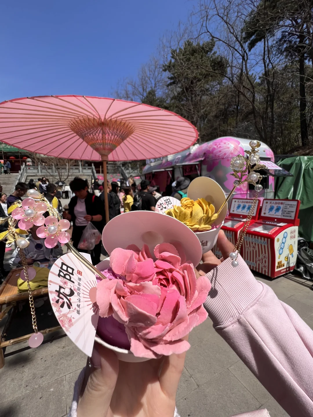 来棋盘山当活人咯~[坏笑R] 这次只买了花宴冰淇淋🍧粉色的真的太美太美了啊啊啊啊啊啊啊啊啊啊啊…… (葫芦奶茶和🌸fafa冰淇淋是分开的两条长队别排错了!!!!) 比美照更有杀伤力的当然是生命力! 祝姐妹们放假阔落!!!
