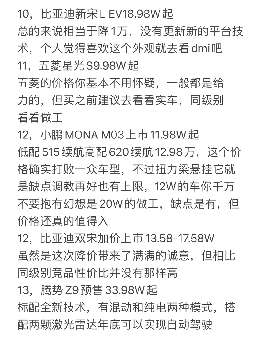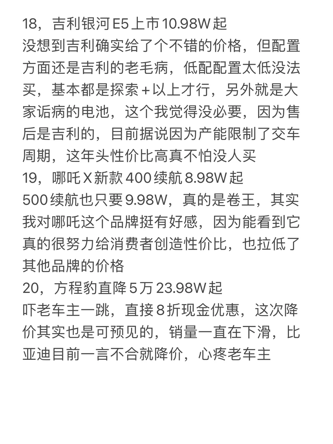 ‼️总结:在今年车企大洗牌这个节骨眼上,新能源车价格战愈打的激烈,愈适合买燃油车,所以时机不是等来的,是要持续观察!说到底就一句话:价格合适就入!