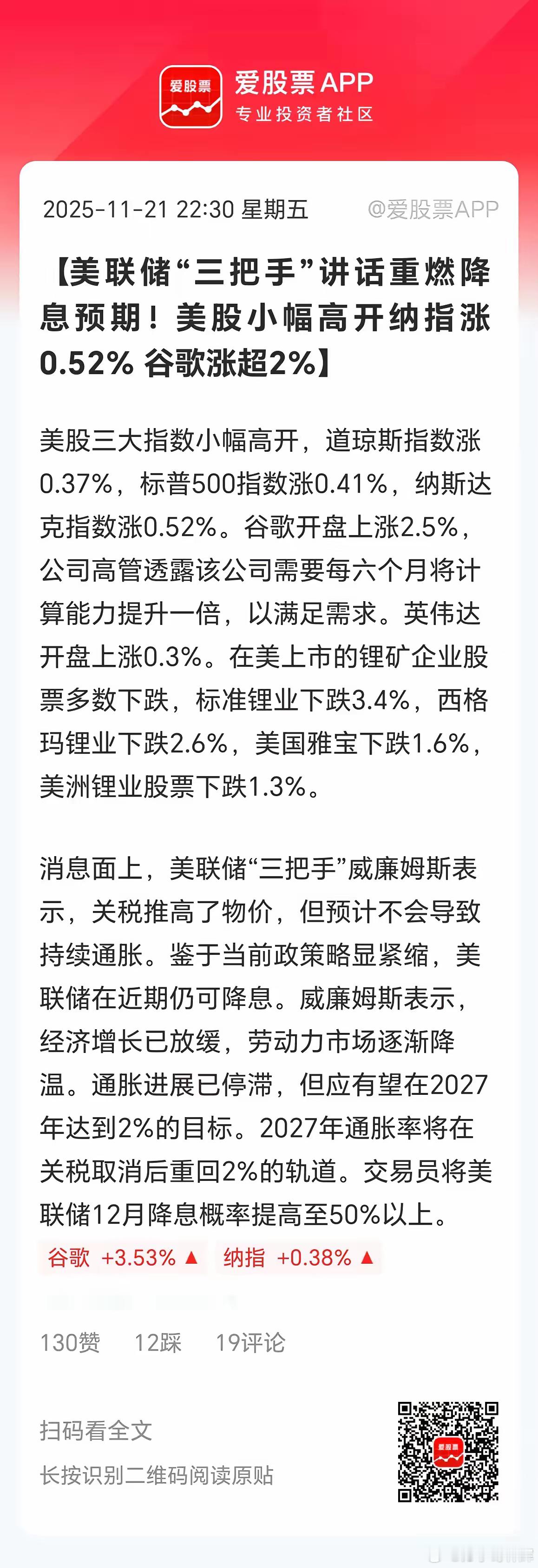 美股只大跌一天,美联储就出来改口“救市”。两大官员发声,存在进一步降息空间!消息一出,12月降息概率提高至50%,前一天还是27%。 不得不说,老美预期管理有一套,难怪能维持十几年的慢牛。这是值得我们学习的,不应该再一涨破4000点就恐高,一出现妖股就停牌!不过,今晚美股大概率是弱反弹,不用期待过高了。但后面还有特朗普呢,老川很久没对美股说话了,搞不好在憋什么大招。毕竟,真正的股神不研究K线,而是自己画K线。美股要反弹的话,下周A股也要喘一口气了。系统性风险暂时解除,下周大理应要反弹的!看到一个观点说,A股花了大半年走成了美股化的样子,这一回头发现美股却开始A股化了,把我们高开低走的绝活学走了。这世界果然是一个巨大的草台班子啊!