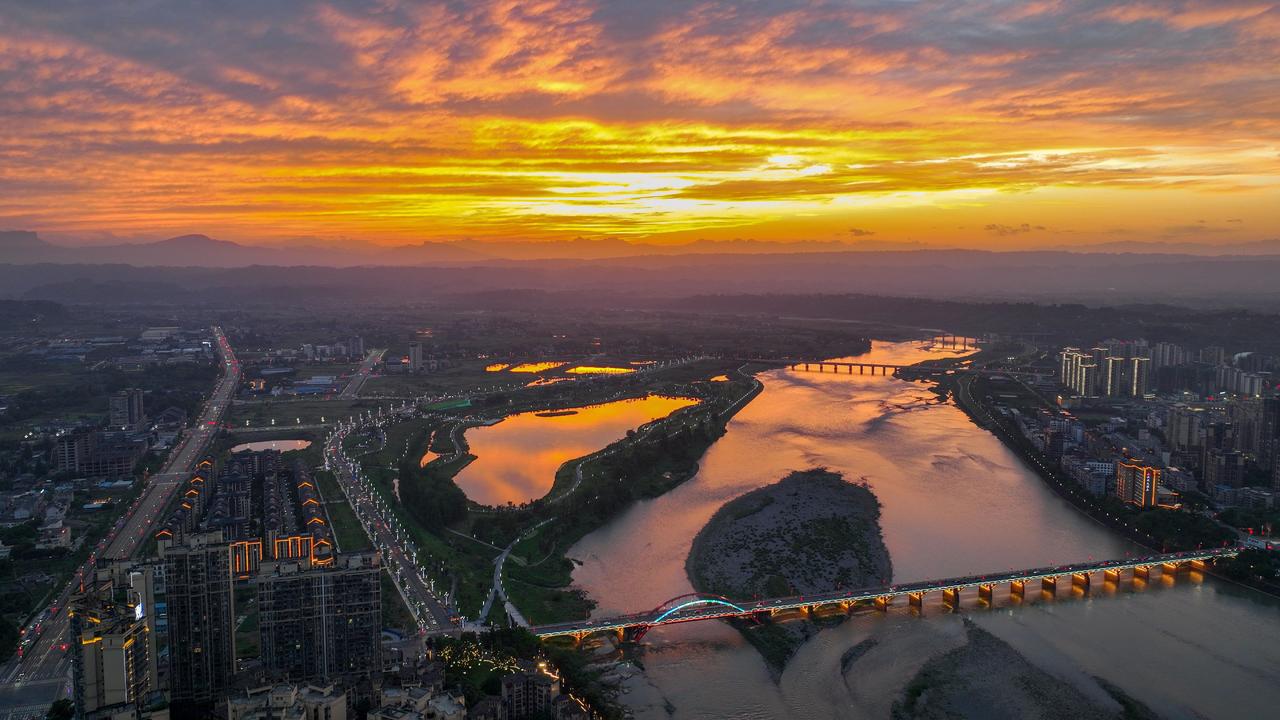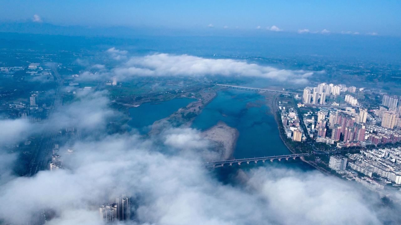 定格晨雾中的洪雅县城 在冬日的清晨,眉山洪雅眉山美丽童话 青衣江如同一