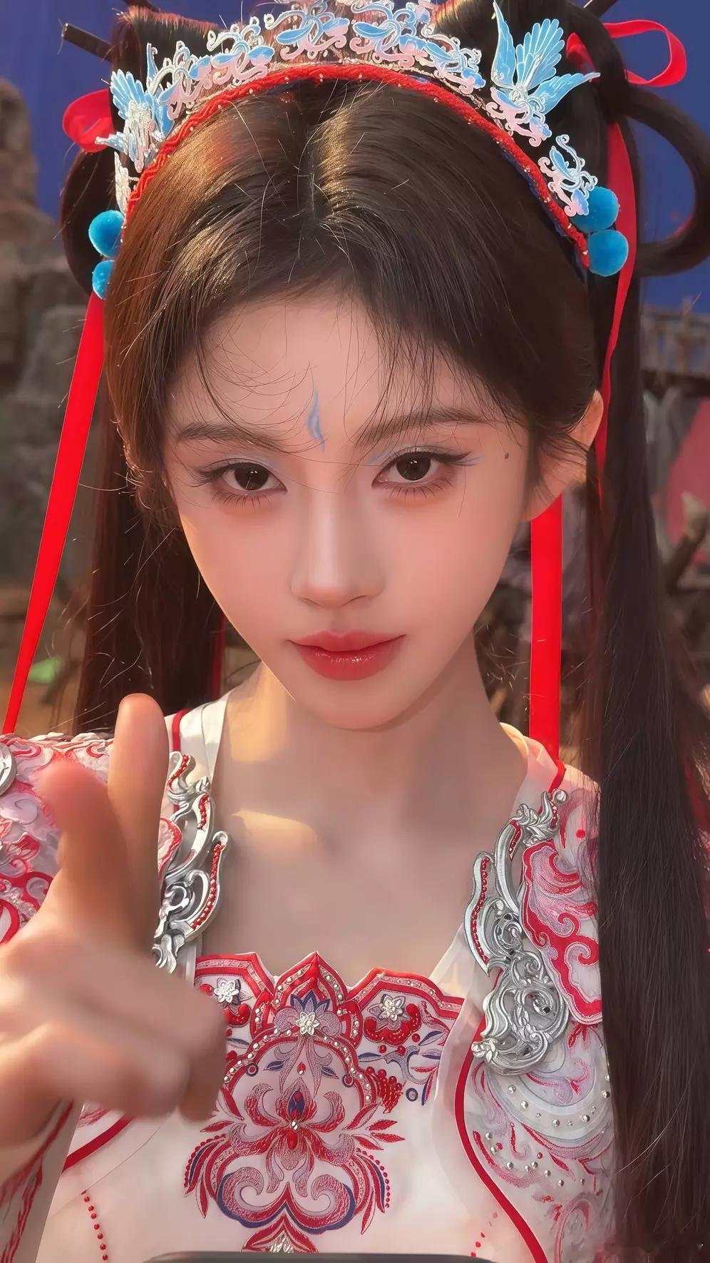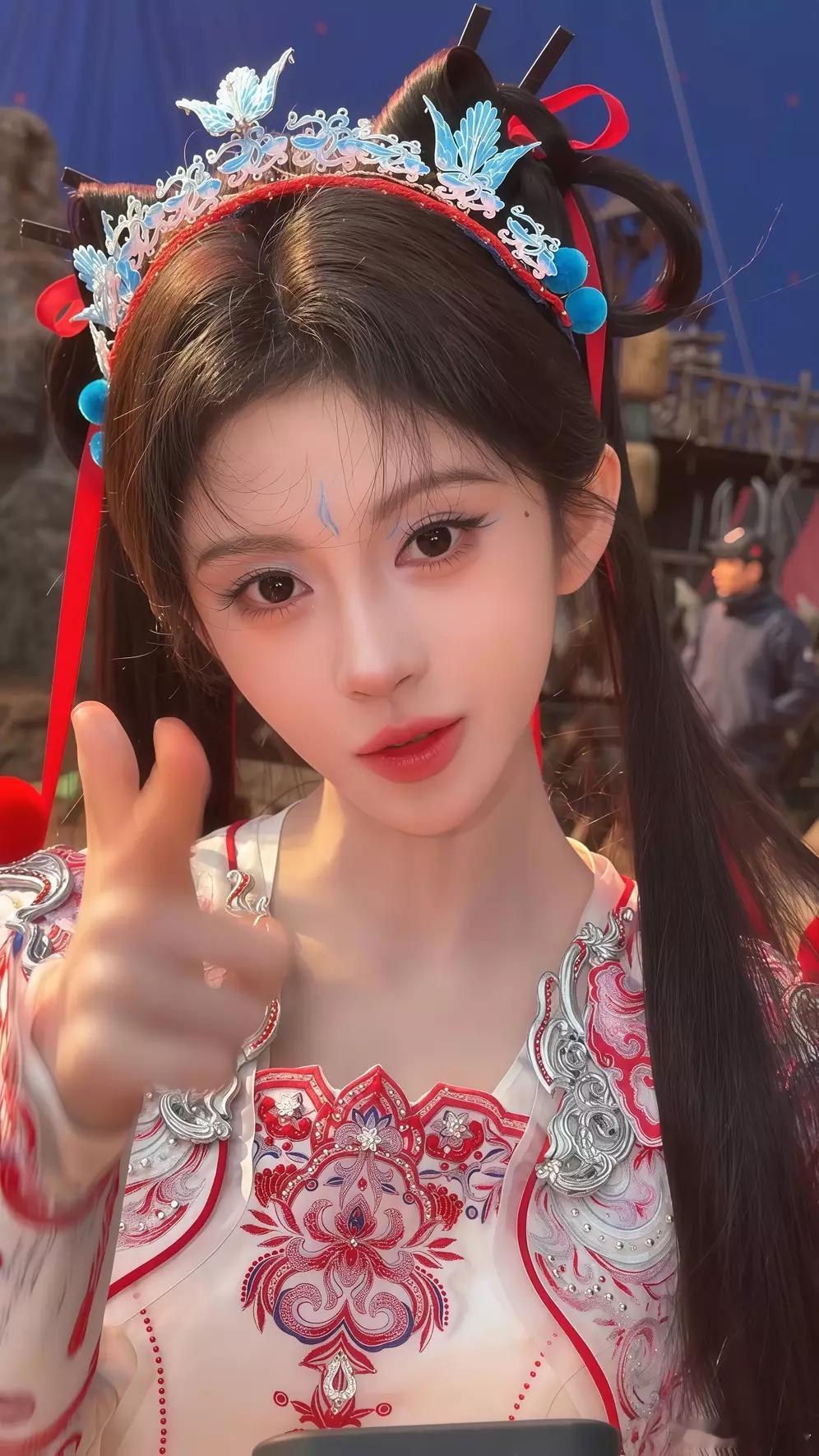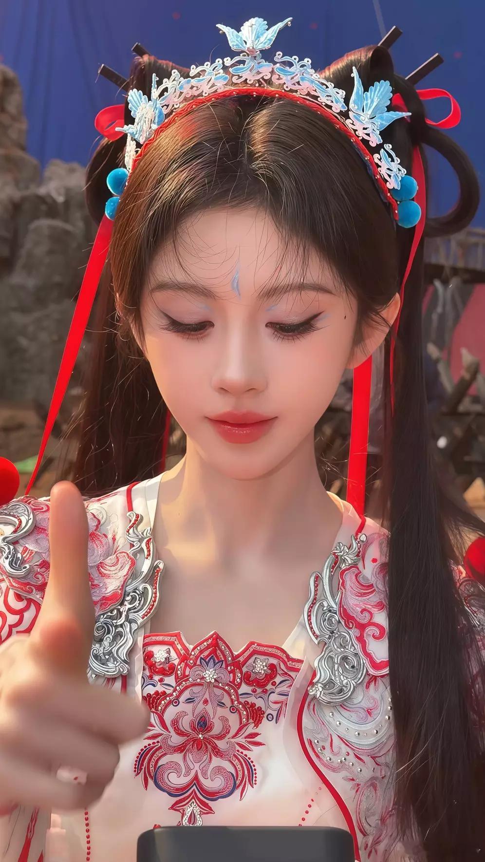 鞠婧祎簪花造型明艳美丽 对镜甜笑表情可爱活泼灵动