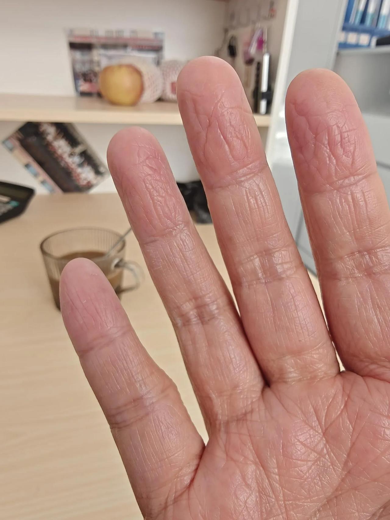 手心干的跟塑料假手似的,什么毛病 快半个月了,手指肚没指纹,手机都打不开,手心从里到外的烧挺,疼的像要裂开似的,喷雾,护手霜,都不好用,表皮就像被塑料封住,拿剪刀会滑掉