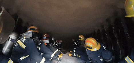 消防队模拟演习视频,终于明白为什么遇见火灾要压低身子逃跑了