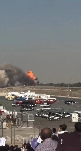太可怕了,杜拜航展周五发生致命意外,一架印度空军「光辉」轻型战机在进行午后最后一场飞行展示时突然坠落,撞地瞬间爆成巨型火球,浓烟直窜天际,吓坏大批观众。印度空军其后证实,飞行员不幸殉职,印度战机被毁 已展开调查。 事故于当地时间下午2时10分左右发生,现场位于杜拜世界中心的阿勒马克图姆国际机场。战机为单座型,属印度自行研制的轻型战斗机。当时天空晴朗,观众席满座,战机突然失控坠地并立即起火,消防车与救护车随即飞奔至现场,航展亦紧急暂停,观众被引导撤返展馆。