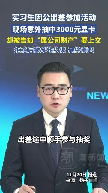 实习生出差抽中3000块显卡,正美滋滋想配电脑呢,结果公司一句话让他傻了, 上周他跟着部门去合作方活动,自己亲手摸的奖箱,中了个RTX3060(刚好够他凑主机)。 转天HR找他:“因公参加的活动,奖品得上交,算公司财产。” 他不同意,领导轮番找他谈,说“不懂团队意识”“年轻人要学会吃亏”。 最后他实在憋得慌,主动离职了,才实习三个月,第一次碰到这么欺负人的。 有人说“公司安排的活动,上交合理”,也有人骂“这就是抢,手气是自己的凭啥”。 我真是越想越气!实习生一个月才3500,攒半年才买得起的显卡,公司倒好用因公当幌子占小便宜? 合着员工的运气,也要归公司管? 换你是他,你会交吗?