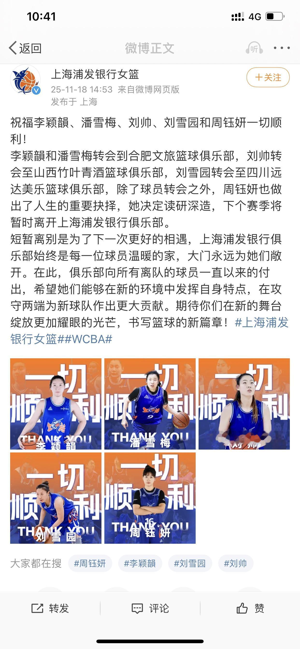 WCBA上海女篮大变样! 可能新赛季会有意想不到惊喜大收获。 因为上赛季上海女篮当中作为主力或者是主要轮换的球员,都纷纷做出新的选择👇 刘帅已经官宣转会至山西女篮,与张茹、翟若云、陈玉婕、刘贝一起向总冠军发起冲击! 李颖韻、潘雪梅确定转会至安徽合肥女篮,看来本赛季安徽合肥女篮是要全力冲击A组了。 刘雪园官宣加盟四川远达美乐女篮。 上赛季在队的宝岛球员陈宴宇转投东莞女篮。 此外,还有两位球员选择暂别职业赛场,走上另一条道路,即周钰妍和丁康辰,她们未来去学习深造,读研究生! 那么新加入的除了知名的刘禹彤和全锦赛已经代表出战的王樱霓、徐紫奇、林心怡,还有来自CUBA的四位,即山东籍的年轻小将初慧宣,以及李妍熹、李美潼、伍湘琳,加上离开八一转会上海,但上赛季不在又重新回归的刘露 这样,上海女篮将是一支差不多完成重建的WCBA队伍,虽然是新人居多,但也许结果会比上赛季还要好也说不定,即可能打进四强。