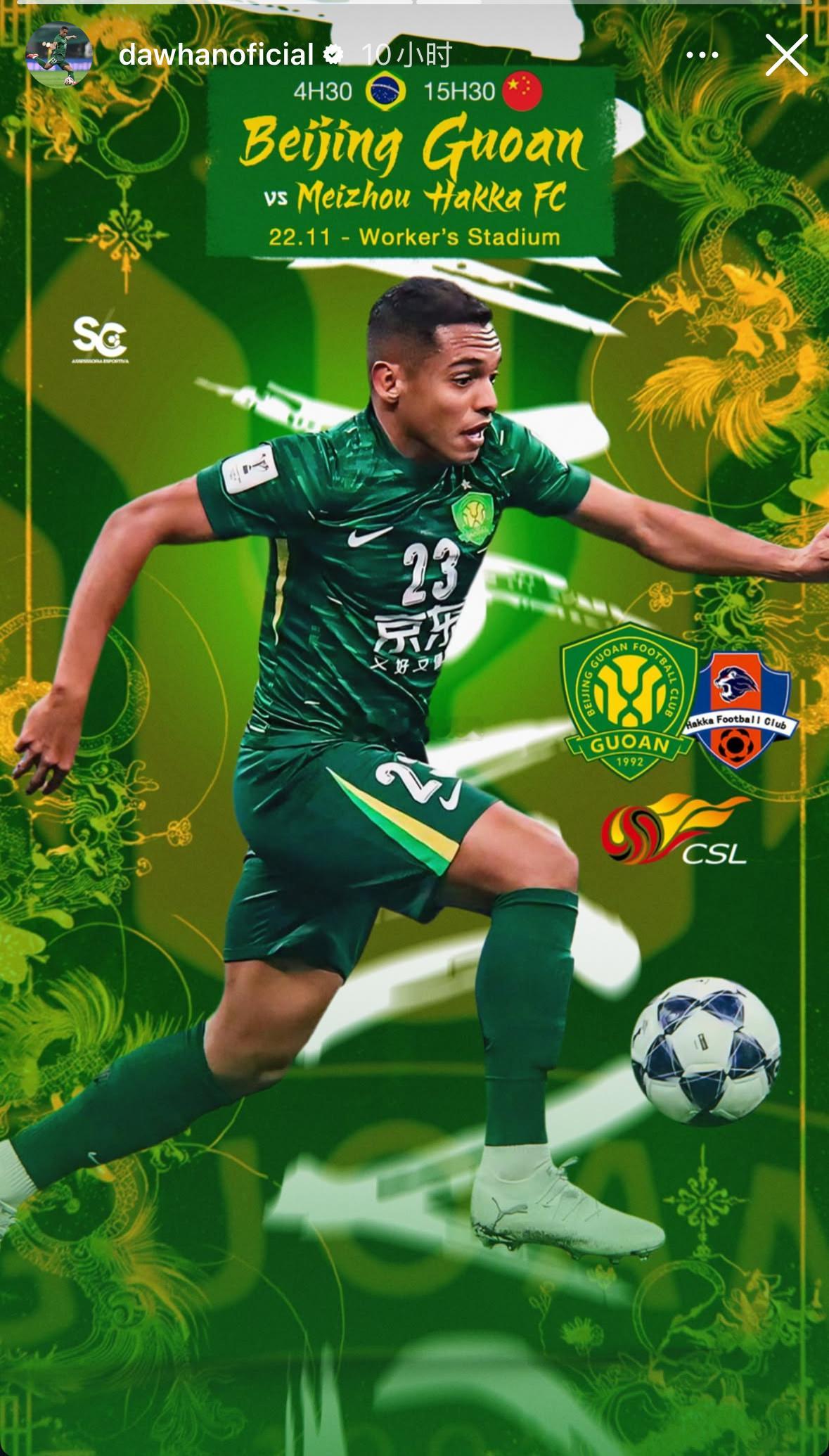 塞尔吉尼奥达万发布联赛收官战对阵梅州赛前海报。