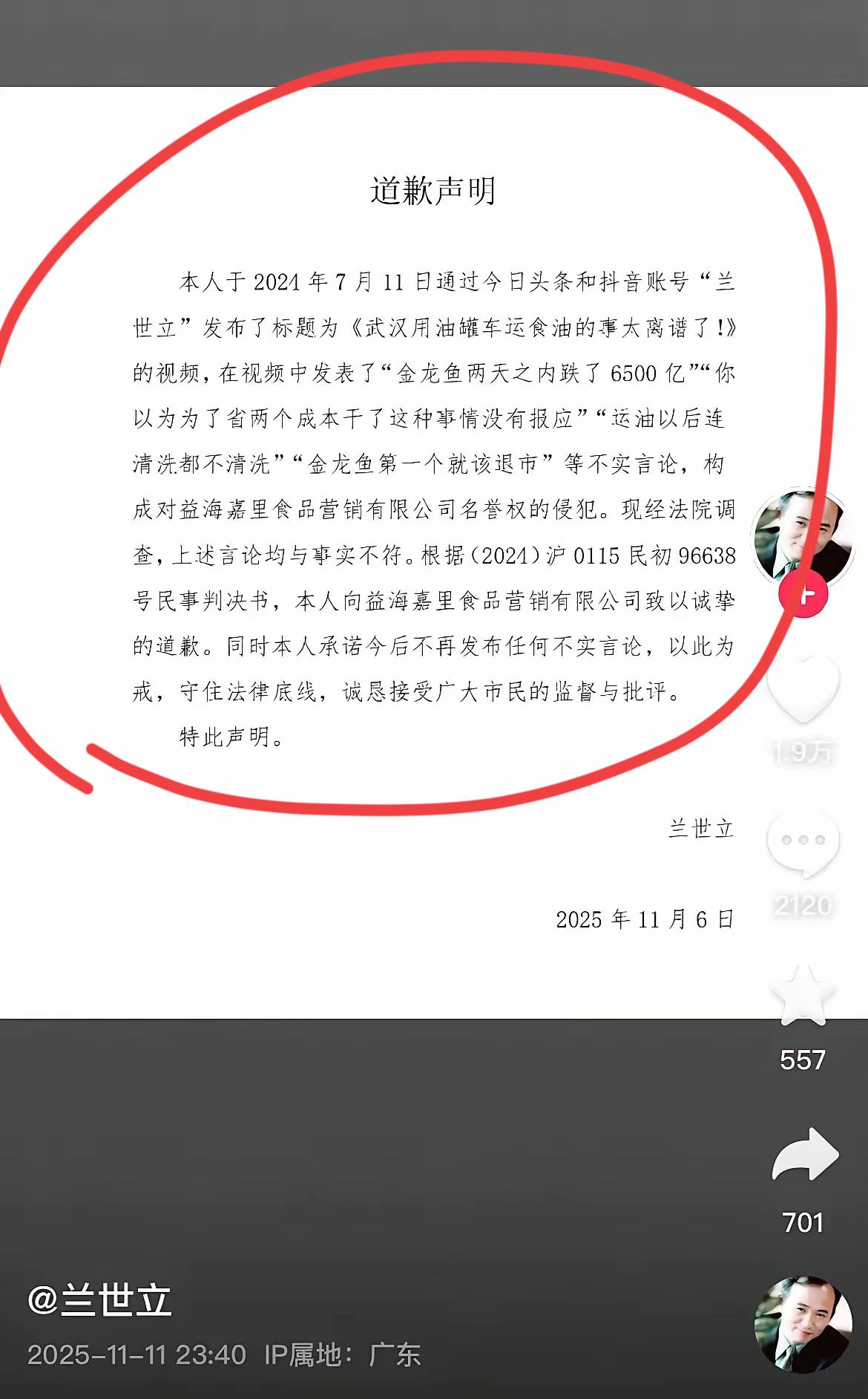 著名企业家,湖北前首富兰世立彻底怒了! 在不久前,他被某食用油巨头起诉,并被判决