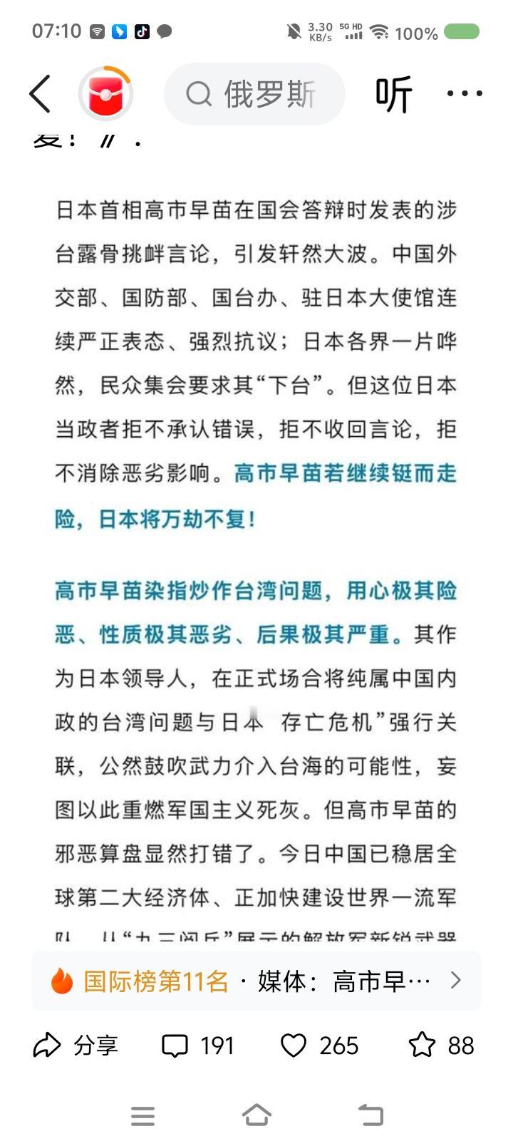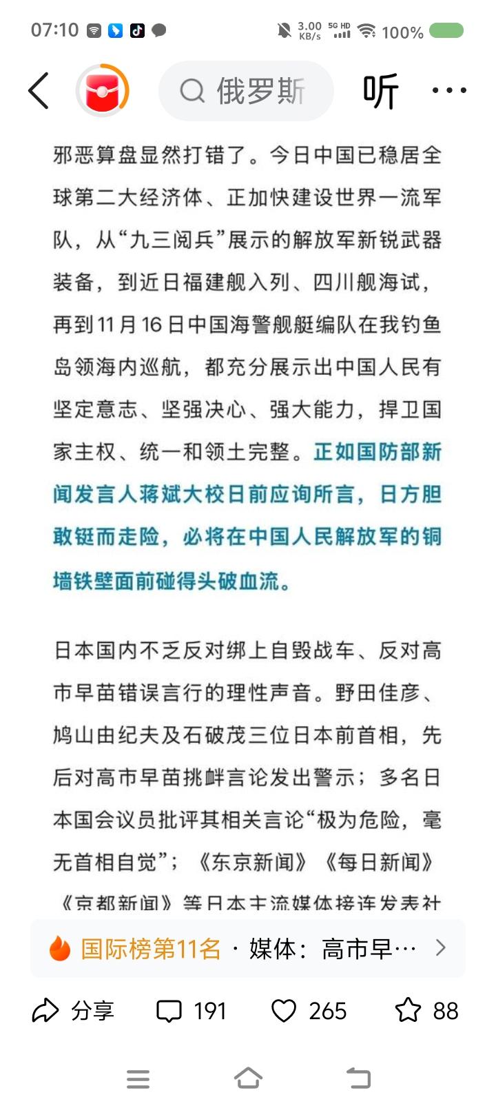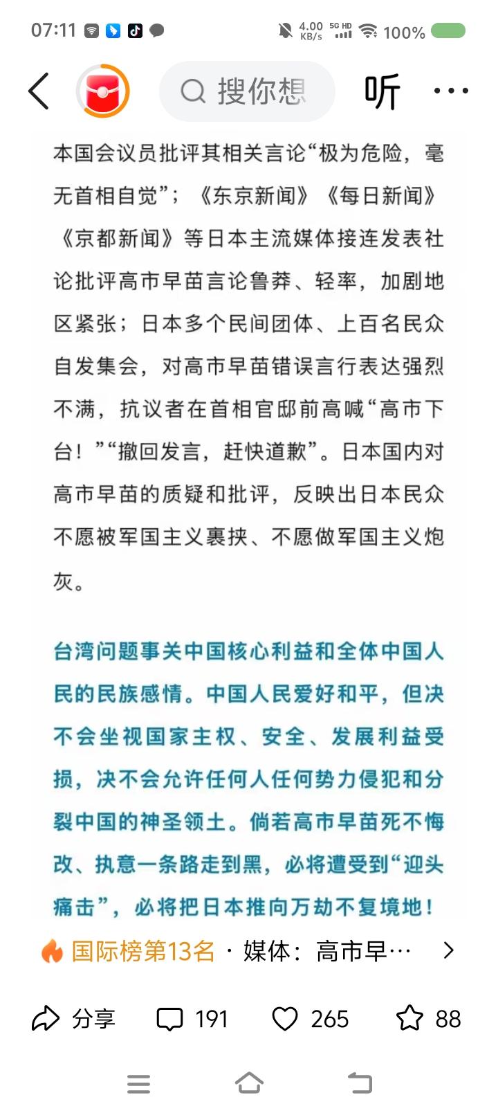 这都什么人?—— 日本首相高市早苗的言论已是为侵略造舆论,中国各方面强势反击。评论区不少人妄议中国措施,为日本军国主义张目,不仅无知,而且涉嫌违法。建议有关部门严查评论区,看哪些账号流窜作案。