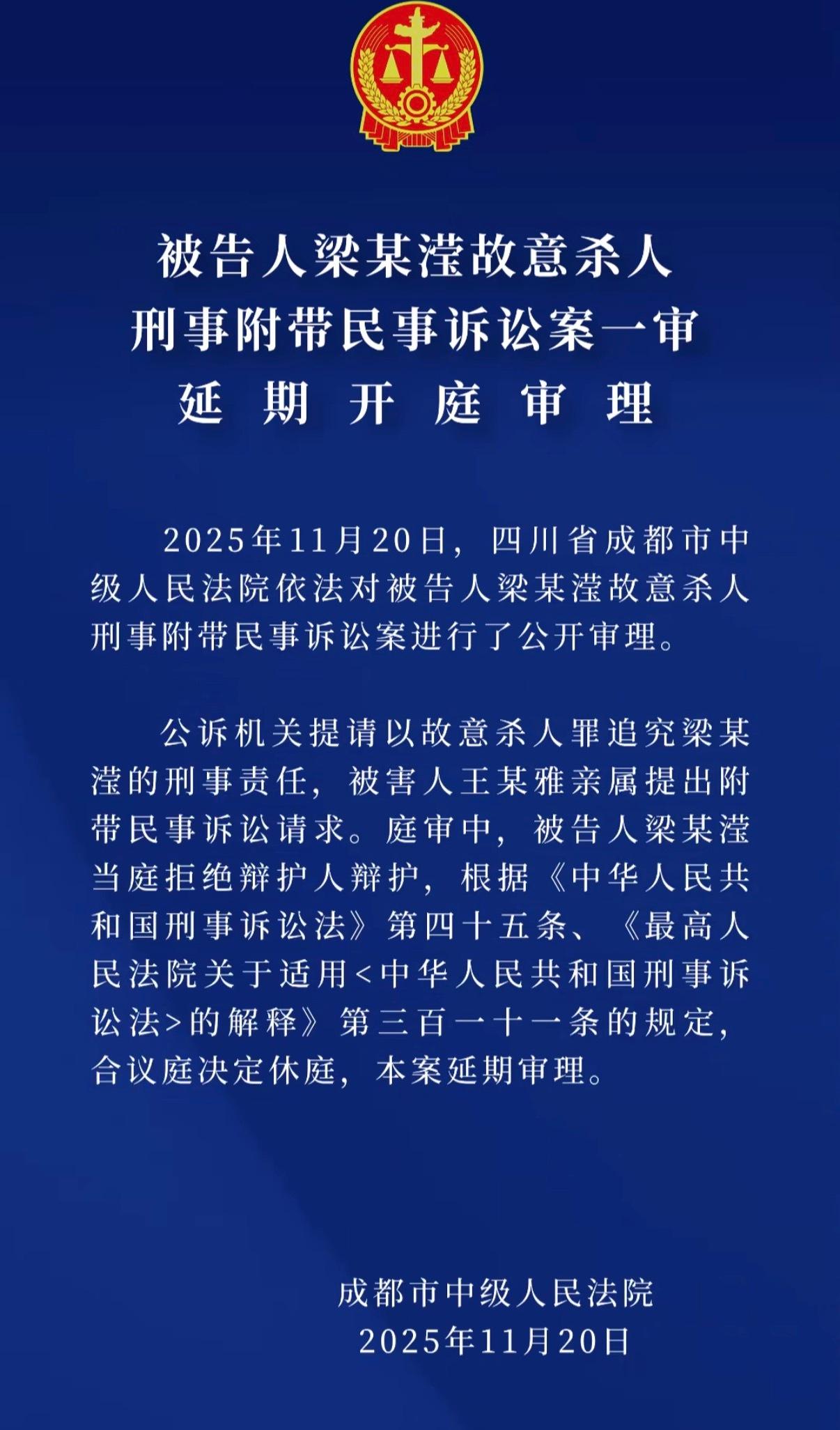 成都门口杀人案的凶手梁某莹,身份有多神秘呢? 据传是35岁离异女性,和成都被害27岁女高材生家同小区。不管是案发后还是一审后,在如此大的舆论下,网上硬是没有一张真人照片流出。 她背后是否有保护伞呢? 案发后第一时间不是被警方和物业安保控制而是被她父母带去做精神病鉴定,关键是案发前此女从来没有服用过精神病药物的历史,但一鉴定就顺利拿到鉴定合格报告! 一审又当庭辩称“正当防卫”,携带刀具是“自我保护”,并称“失去自由很委屈”,梁某滢当庭解除律师委托,导致案件延期审理,如此扰乱法庭秩序,但她没有受到任何处罚,而紫雅母亲却不得已开万人直播寻求声援。 究竟是谁在保护凶手?她的家人从头到尾都只是在“包庇”。而王某雅,她只是无数潜在受害者里,最不幸的那个。 精神病不是犯罪的理由,那些藏在“精神病鉴定”背后的疑云、庭审上肆无忌惮的拖延,还有全网查无踪迹的诡异,到底掩盖了多少真相?当无辜者的生命戛然而止,凶手却能借着各种“理由”规避应有的惩戒,所谓的公平正义,难道要让受害者独自承受所有遗憾?