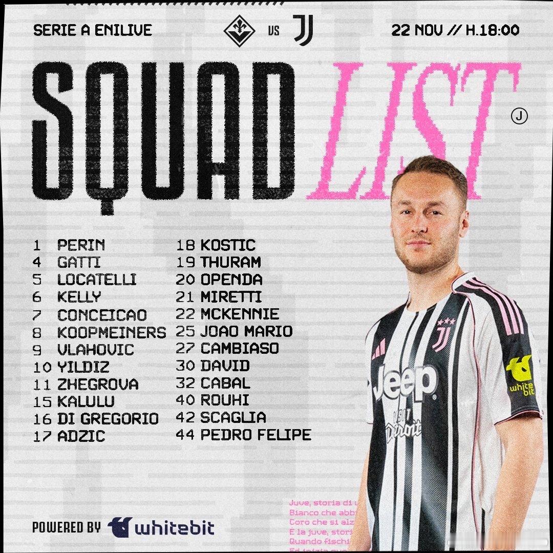 兵强马壮剑指佛罗伦萨!你妇公布了客战佛罗伦萨的比赛大名单,布雷默、米利克、平索里奥因伤缺阵。