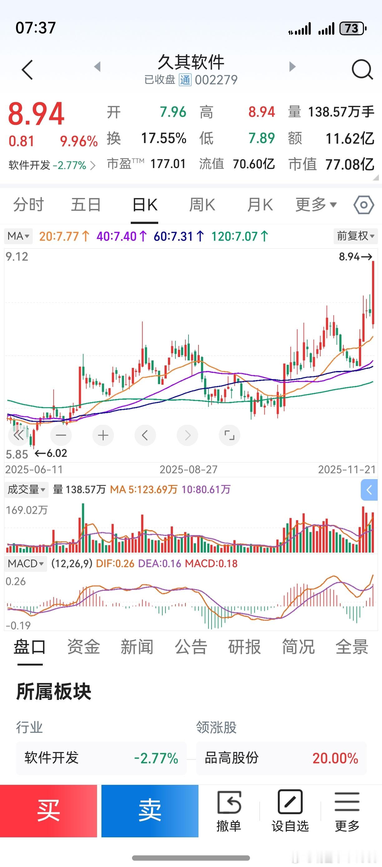周四晚上,老鸭建议v+群朋友把高盟新材加入自选股。也有光刻胶概念,较长时间的横盘震荡。和久其软件类似,40天线上穿60天线。上午拉升时老鸭看到了,在微博上吼了声暴涨开始了,吓着了庄家。结果,没有了结果。仅作个人笑料回顾,不作任何荐股!