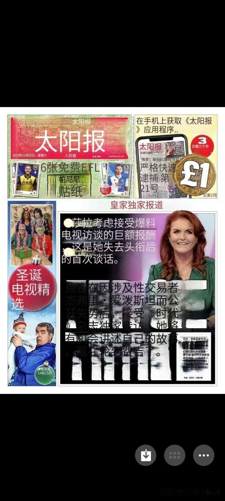 安德鲁王子的前妻,正考虑把自己的隐私卖给太阳报之类的,这也是她失去王妃头衔儿以后的第一次访谈,所以八卦媒体开价不菲。 看来离开英国王室的人赚钱的最好办法就是出卖隐私。 比如哈里王子和梅根,也是出书写东西,爆料在王室的是是非非。 其实她别爆别人的料了,写写自己老公安德鲁的狗血故事吧,保证也不愿意听[笑哭][笑哭]