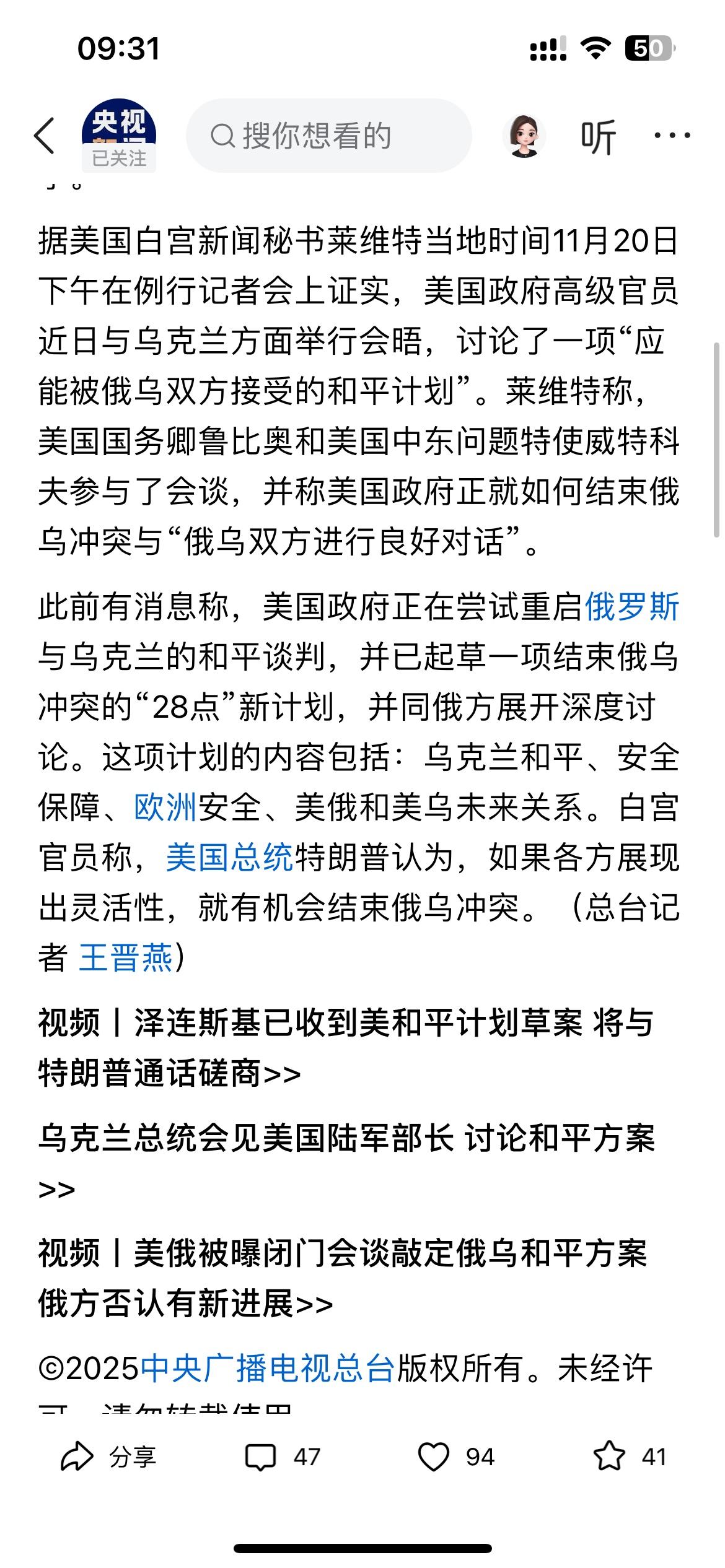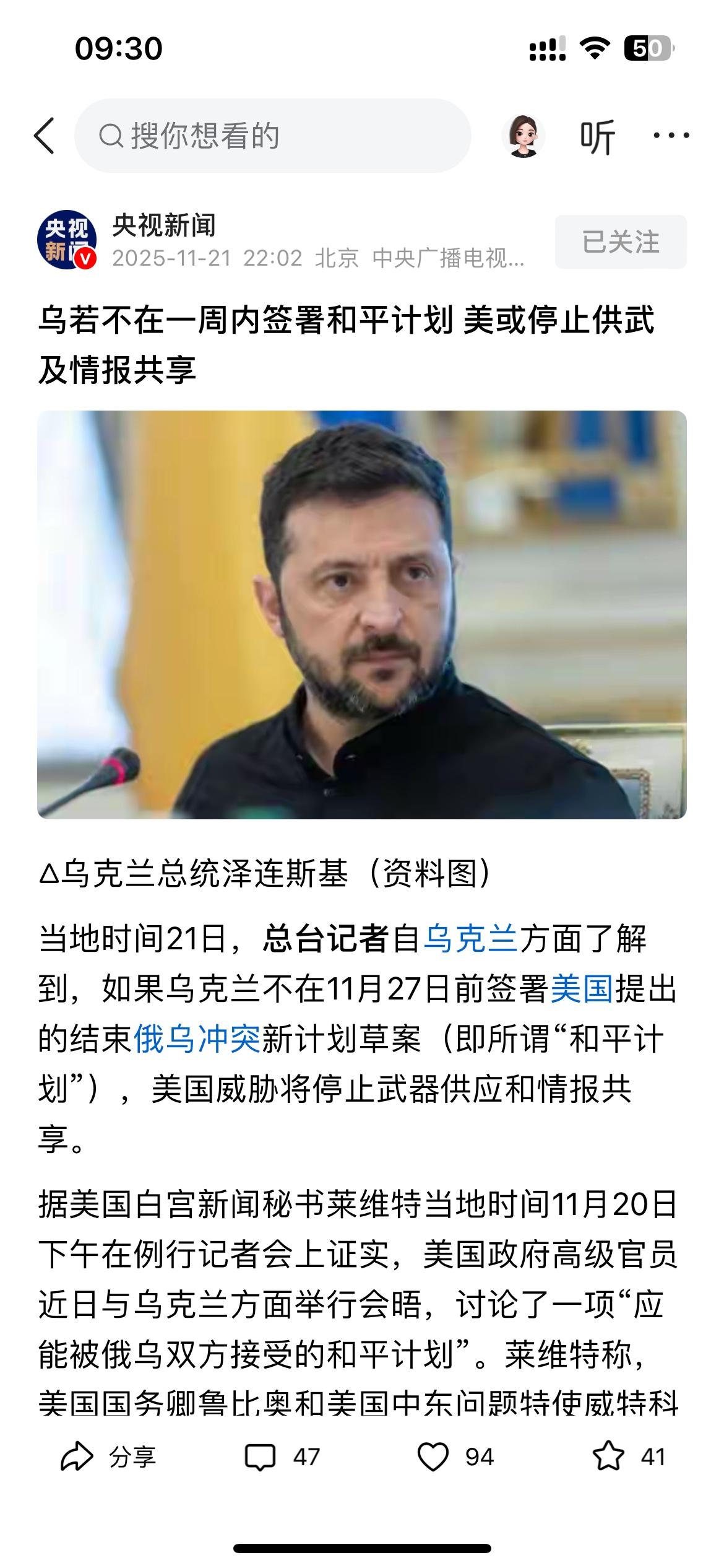 “乌克兰危矣”,美国现在是“软硬兼施,强赶鸭子上架了” 现在美国为他做了两手准备,一手软的准备接受美国提出的结束俄乌冲突的“28点”计划,一手硬的准备是一周内乌克兰不接受和平计划,那就停止供应武器! 感觉特朗普这次是要势在必得,无论如何俄乌冲突要结束了,再不结束,特朗普的话真成空气了!