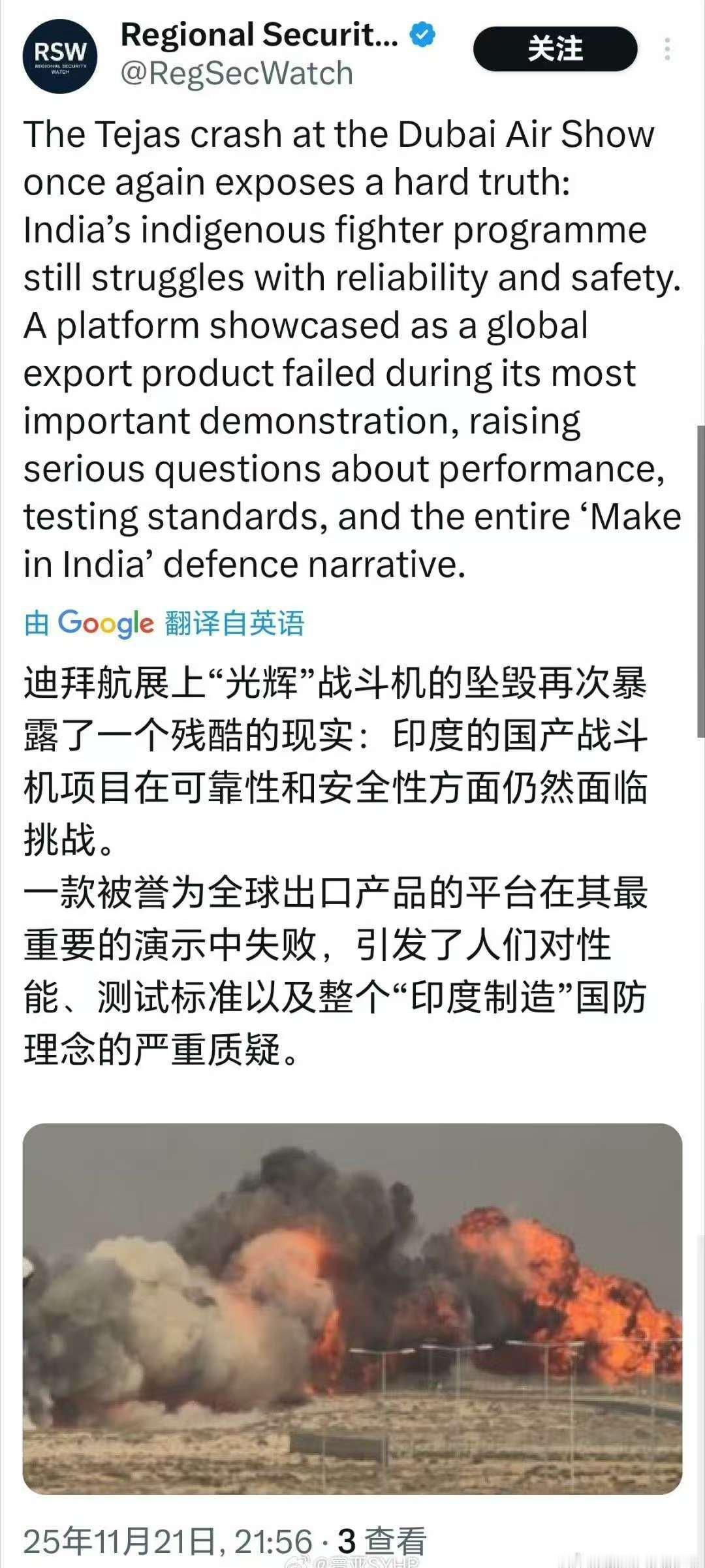 昨天驾驶光辉战机光荣的印度王牌飞行员纳曼.西亚尔,年仅34岁,他们家可是军人世家,爸爸曾经是飞行员,老婆也在空军服役,不靠谱的飞机把他给坑了。在阿联酋航空展,本来印度想在全世界露一把脸,为印度空军找回场子,结果被狠狠打脸。一个七拼八凑的飞机,还想卖给其他国家,哪里来的自信。印度战机被毁 印度五代战机