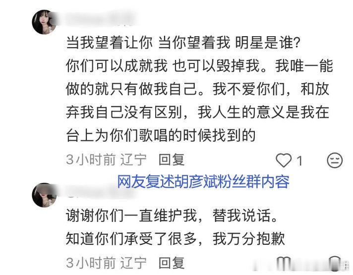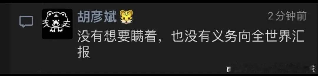 胡彦斌深夜空降粉丝群回应恋情,他表示:“没有想要瞒着,也没有义务向全世界汇报。”