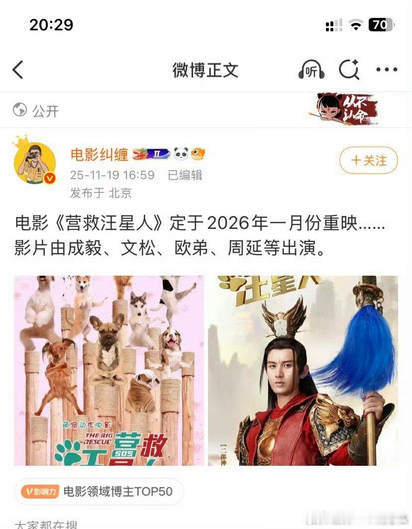 成毅《营救汪星人》定于2026年重映,这么好笑呢,差点错过了!人类的一番,打算扛多少票房?
