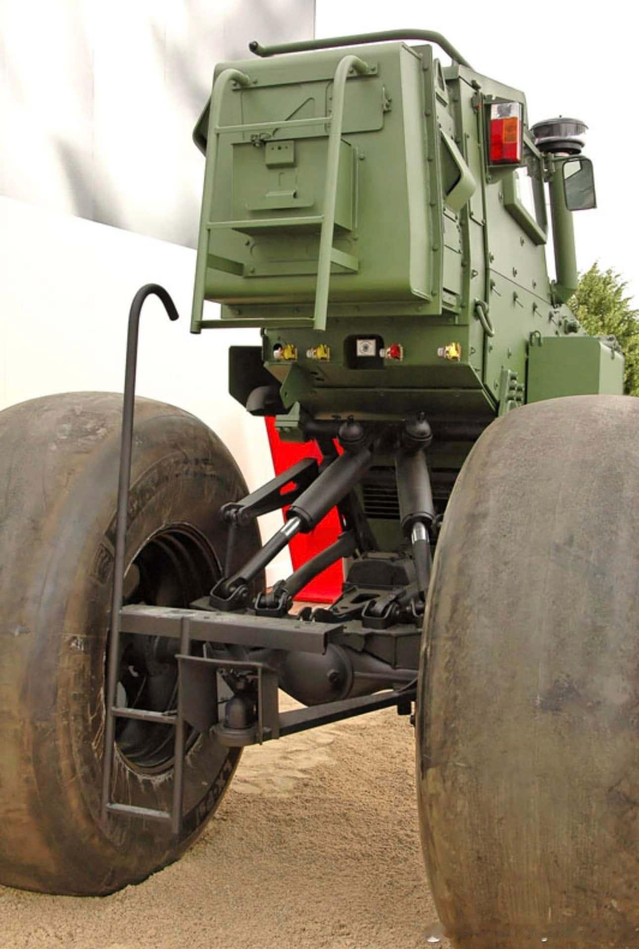 配备实验性米其林低压轮胎的法国SOUVIM 2扫雷车。SOUVIM 2的主要设计目标是在布满各种地雷的区域(包括压敏地雷、磁性地雷、热敏地雷、绊线地雷和倾斜杆式地雷)开辟一条安全通道。该系统设计用于在八小时内清理长达150公里的道路。