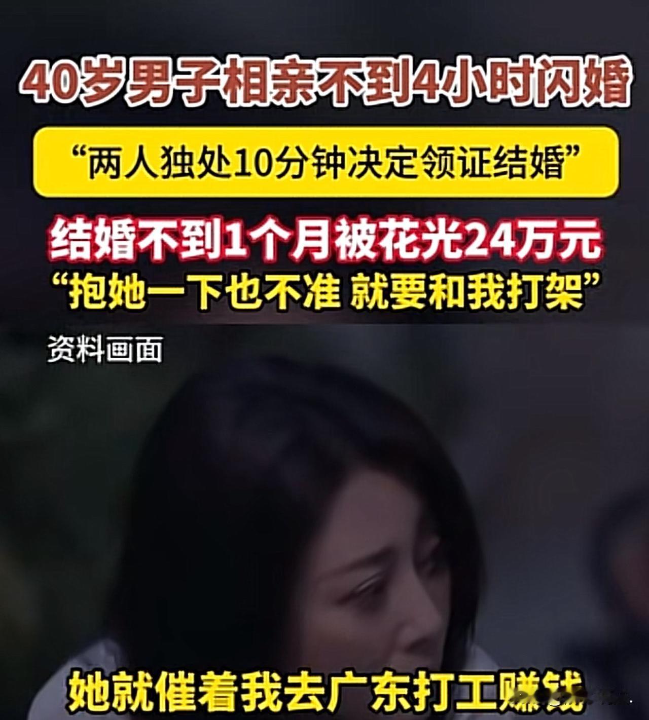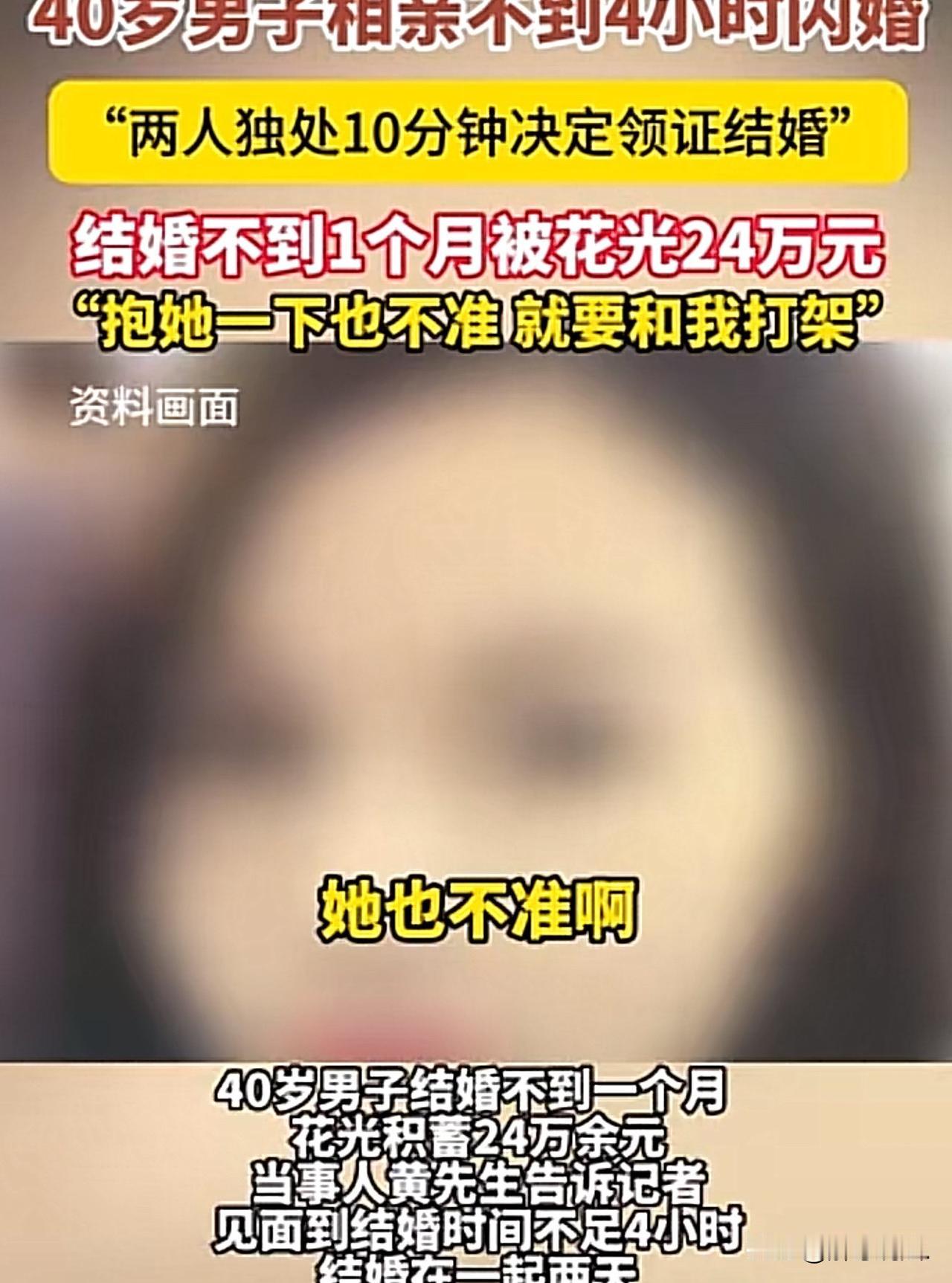 湖南衡阳,40岁男子以为遇到了真爱,和相亲认识不到4小时的女子领证结婚证。谁知,结婚2天后,妻子就让他去外地打工赚钱,男子想和妻子温存一下再走,可妻子连抱抱都不让。男子想着两情若是长久时,也不在朝朝暮暮,就答了。可他出去后,妻子没事不联系他,只要联系他,就张口闭口的要钱,才一个月的功夫,男子就转给妻子24万。眼看着男子被炸干了,妻子的狐狸尾巴终于露出来了。 四十岁的老黄在建材市场摸爬滚打了快二十年,从跟着师傅搬瓷砖的小工,熬到自己能带队接活的小包工头,手里攥着那24万存款。 眼看着身边的发小早就儿女双全,自己还是单身狗,他着急了,可缘分这东西,就是迟迟不肯敲门。 去年秋天,工地上的老李说自己有个远房亲戚,年纪相仿,人也本分,撺掇着两人见一面。 老黄本来没抱多大希望,想着无非就是走个过场,可真见到面,心里那根沉寂多年的弦还是被拨动了。 女方长得也不错,软声细语的询问他工作累不累,平时吃不吃得好。 老黄这辈子净跟水泥沙子打交道,很少跟这么合眼缘的女人聊过天,越聊越投缘,从年轻时在工地受的苦,到现在对未来的规划,甚至连自己藏在银行卡里的积蓄、准备买房的打算,都一股脑地说了出来。 他看着对方认真倾听的样子,只觉得这就是自己寻觅了半辈子的知音,相见恨晚的感觉油然而生。 老黄当时脑子一热,当即求婚,没对对方,想都没想,就答应了。 就这样,从见面到签字领证,前后加起来还不到四个小时。 可没想到,结婚刚两天,女方提了让老黄去广州打工。 本来老黄还想着趁这段时间不忙,多陪陪对方培养感情,可对方态度坚决,老黄一想两情若是长久时,岂在朝朝暮暮,就答应了。 出发去广州的前一晚,老黄洗漱完,看着坐在沙发上的妻子,想着往后就要两地分居,心里难免有些不舍,便想和妻子温存一番。 可他的手刚伸过去,就被对方猛地推开,力道大得让他踉跄了两步,紧接着对方就摆出了要翻脸的架势,眼神里的厌恶毫不掩饰,那模样像是在抗拒什么洪水猛兽。 老黄讪讪地收回手,心里堵得慌,却还是给自己找台阶下,觉得可能对方性格保守,还没适应夫妻间的亲密,没敢再多想,默默收拾好行李,一夜无眠。 到了广州,老黄找了个装修队的活,比在郑州更拼命,每天天不亮就起床,跟着工人爬高上低,晚上九十点才拖着疲惫的身体回到出租屋。 他心里装着家里的人,再苦再累都觉得有奔头,每天再晚都会抽出时间发几条消息,问问家里的情况,叮嘱对方照顾好自己,可每次收到的回复都寥寥无几,打电话没说上三两句就被匆匆挂断。 可只要对方主动联系,目的永远只有一个,要钱。 一开始是说家里水电费该交了,后来是想买点换季的衣服,再到后来,理由越来越多,一会儿说亲戚生病要借钱,一会儿说想做点小生意需要本钱。 那些要钱的消息和电话,像催命符一样,隔三差五就来一次,频率越来越高,数额也越来越大,从一开始的几千块,慢慢涨到几万块。 老黄一开始没觉得有什么不妥,总想着自己在外打工,不能陪伴在身边,多给点钱也是应该的,算是弥补对对方的亏欠。 每次对方开口,他不管手头多紧,都会想办法凑钱转过去,有时候工资没发,就跟工友周转,甚至宁愿自己少吃点、少花点,也不想让对方受委屈。 身边的工友都劝他留点心眼,说刚结婚就这么频繁要钱不太正常,可老黄总觉得,刚组建家庭,互相体谅是应该的,万一对方真有难处呢,自己作为男人,多担待点也是应该的。 可渐渐地,老黄就有些扛不住了。 他在广州的工资一个月也就一万出头,除去自己的生活费和房租,根本跟不上对方花钱的速度。 无奈之下,他只好动用自己攒了二十年的积蓄,那笔钱是他准备用来买房付首付,甚至养老应急的底气,可每次想到对方可能在老家等着自己挣钱回去,他就狠下心把钱转了过去。 心里不是没有过嘀咕,也疑惑过对方怎么花得这么快,可话到嘴边,又怕伤了夫妻感情,只好一次次咽了回去。 不到一个月的时间,老黄辛苦攒下的24万积蓄,就被一笔笔转了出去,分文不剩。 老黄心里不是滋味了,想问问妻子,钱都花哪去了。 可消息发出去,等来的不是耐心的解释,而是带着不耐烦的冷淡回应,字里行间都透着嫌弃,意思是没事别老联系。 他才意识到对方从始至终都当自己是摇钱树,见自己被炸干了,就想抽身了。 老黄后知后觉,为时已晚,钱早进了对方的腰包里,要回来的可能性不大了。 《刑法》第266条规定:诈骗罪是指以非法占有为目的,用虚构事实或者隐瞒真相的方法,骗取数额较大的公私财物的行为。 若有证据证明女方在相亲时故意隐瞒真实意图,以结婚为幌子,虚构“共同生活”的事实,骗取老黄大额财产,且数额(24万)已达到“数额巨大”标准,老黄可向公安机关报案,追究其刑事责任。 但需注意,刑事立案对证据要求极高,需证明女方从一开始就无结婚意愿,仅以骗钱为目的是很难得到法院支持的。