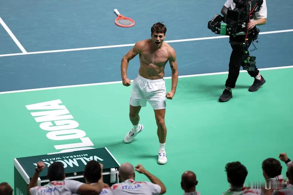 23岁的科波利这次是意大利的英雄! 今天凌晨结束的戴维斯杯首场半决赛,意大利2-0横扫比利时,连续第三年锁定决赛,而当日两队最“惊心动魄”的比赛,无疑是科波利大战贝尔赫斯——听说,意大利男足可能无缘世界杯? 在贝雷蒂尼2-0横扫科利尼翁为意大利取得开门红之后,科波利与贝尔赫斯连续第二年在戴维斯杯狭路相逢。去年两人在戴维斯杯遭遇时,贝尔赫斯决胜盘6-0横扫科波利,而此次再度遭遇,科波利用一场堪称神奇的决胜盘完成复仇。 双方进入决胜盘之后,科波利错失两个赛点不得不与贝尔赫斯进入抢七,随后,不可思议的一幕随之上演。科波利挽救4个赛点后错过1个赛点,科波利挽救1个赛点后错过3个赛点,科波利又挽救2个赛点后终于17-15拿下胜利……这场耗时3小时07分钟的比赛,科波利错失6个赛点、挽救7个赛点,谁能坚韧显然不用多说。 缺少辛纳的意大利队,在决赛的对手将是西班牙队与德国队之间的胜者,西班牙队缺少阿尔卡拉斯,德国则由兹维列夫坐镇。