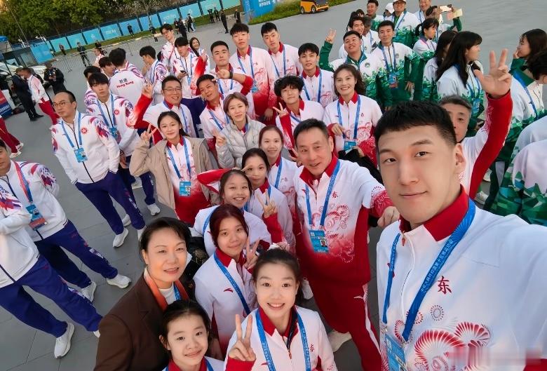 昨晚的闭幕式杜润旺还给广东代表团拍了一张大合照诶
