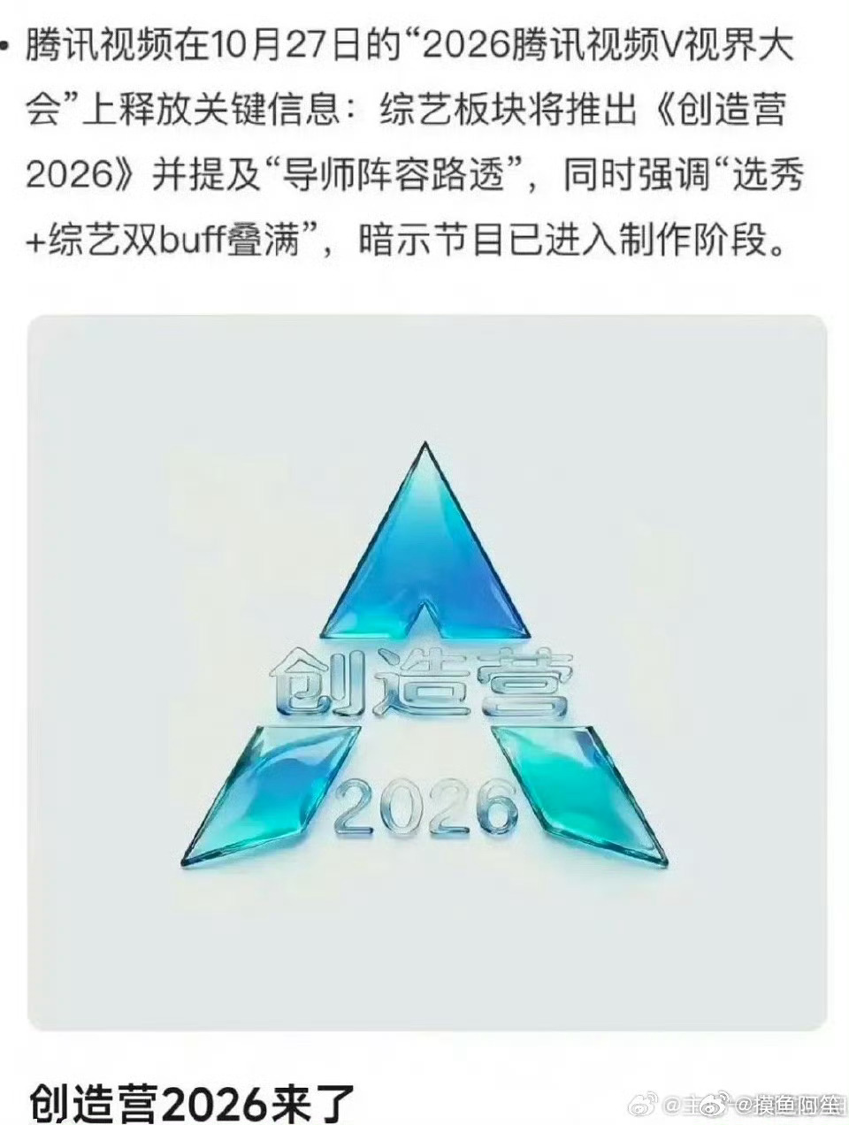 前几天还看到有博主在说选秀啥时候回来……这不创造营2026来了……