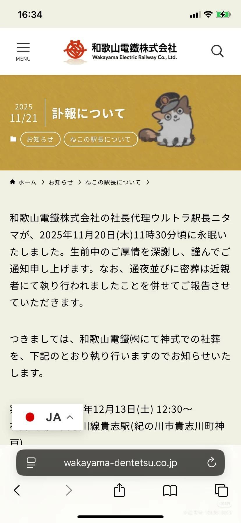 和歌山贵志川线的二玉站长回喵星了谢谢二玉这些年代替小玉守护了这条贵志川线,守护了周围的居民放心去找小玉吧~