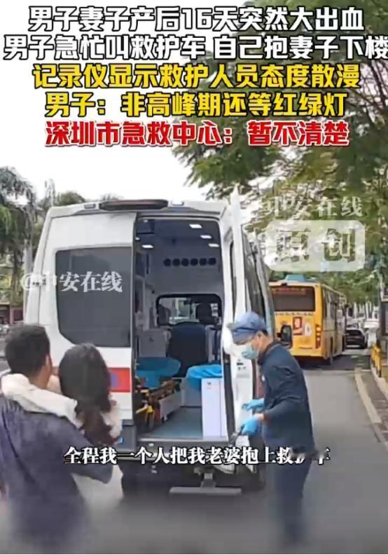 “严查到底!”近日,广东深圳,一女子在家突然大出血,老公焦急的叫了救护车,不料,对方却表示找不到地方,男子只能抱着妻子到小区门口等,没想到,赶来的护士却十分散漫,站在一旁无动于衷!网友:这是拿生命当儿戏。 “要是我媳妇儿有点什么意外,我跟他们没完!”男子在妻子突发大出血时,心里满是无助和愤怒,就连网友们看了都觉得不敢相信,竟然会有这样的医护失职。 那天男子的妻子突然大出血,情况十分危急,男子立刻拨打了急救电话。可是救护车一时没能赶到,司机居然告诉他找不到准确地址!男子急得团团转,最后只能抱着妻子从楼上走到小区门口等救援。 然而救护人员到现场后,更加让人傻眼了。 根据监控录像和家属的描述,救护人员到达后,根本没有马上准备担架,也没有什么紧急救援的动作。最离谱的是,有一个救护人员全程拿着手机,似乎完全不关心病人的情况,直到家属自己把妻子抱上了救护车。 这个过程,简直让人看了心疼又气愤,生命竟然被这么草率对待。 这件事被发到网上后,网友们纷纷爆发了愤怒,大家都觉得太过分了。救护人员不但反应迟缓,还完全没有紧迫感,仿佛把人命当儿戏。许多人表示,遇到这种情况,心情能不崩溃才怪。 后来医院方面回应了,领导当晚就上门道歉了,并且提出整改方案,表示会加强对急救人员的培训和管理,确保类似的事不会再发生。听起来挺诚恳的,但大家还是觉得,这种事真的不应该发生,也不能只靠道歉就算了。 其实,从整个过程来看,救护车司机找不到地方,暴露出的是地址定位方面的问题。而救护人员的表现更让人心寒,医疗急救,讲求的是迅速反应和专业执行,但在这起事件中,却展现了对生命的漠视。 这种态度,应该引起我们每个人的反思。毕竟,急救工作和态度真的至关重要。在这种情况下,救护人员本应该全力以赴,而不是做出不负责任的行为。 说到底,生命安全是最重要的,而我们当前的急救体系,显然还有许多需要改进的地方。每一名医护人员的职业责任感,都应该从根本上得到提升,毕竟他们的一个小小失误,可能就会决定一个人的生死。 希望以后类似的悲剧不再重演,而这些问题能引起更多的重视,让每个人的生命都能得到应有的尊重和保护。 信息来源: 极光新闻丨女子产后突发大出血 遇救护人员态度散漫、行动迟缓 中安新闻客户端丨非高峰期等红灯?男子记录仪揭救护车“慢救援”,深圳市急救中心:暂不清楚 文丨小王 编辑丨史叔