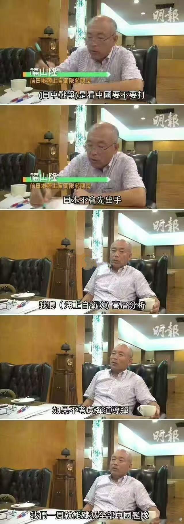 对于日本前陆自参谋长称一个星期消灭中国海军的说法,网友直接神回复,如果泰森不还手,我可以一个星期打死他