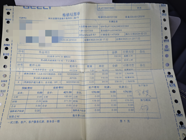 星瑞二保了你猜花了多少钱 开到现在有一万一千公里了,没工作后,平时用车不怎么多,这几天售后通知来二保,周末就去了,人还比较多等了4个小时才做完,夸奖下这次洗车比首保干净很多,最后附上详细花费哦