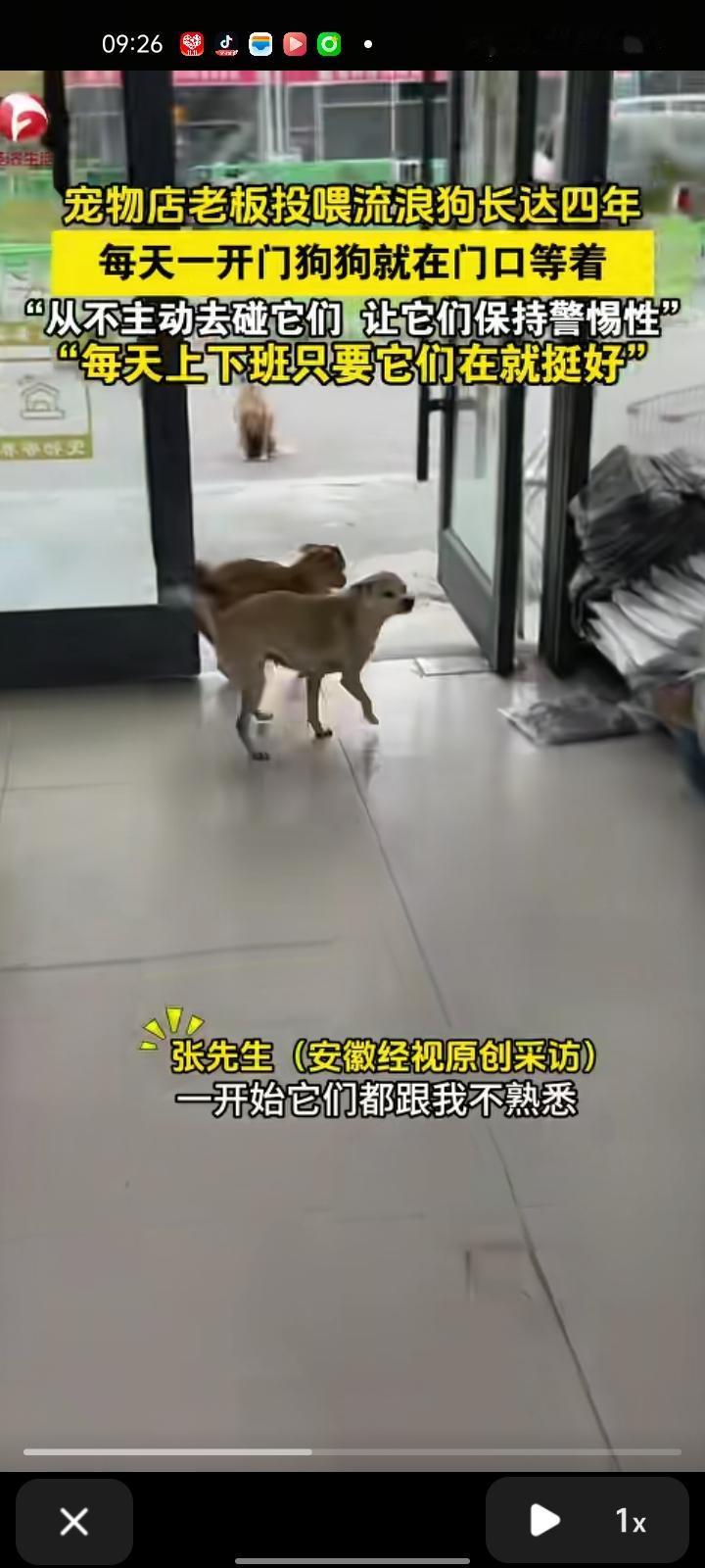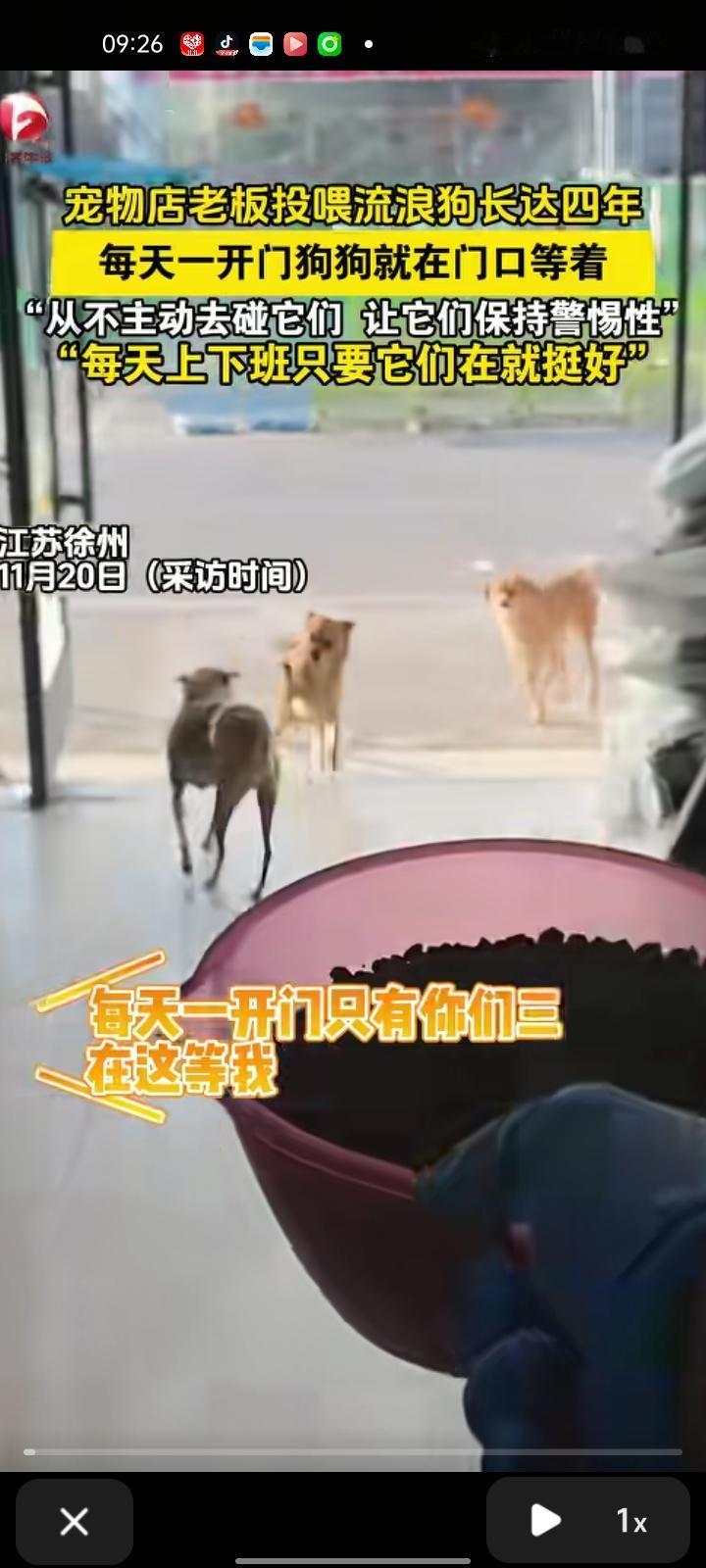 近日,徐州新沂市。宠物店老板投喂流浪狗长达四年,每天一开门狗狗们在门口等着。店老板张先生称,一开始跟它们不熟悉,看着它们比较可怜,瘦成皮包骨,店里本来有狗粮,给它们吃一点无所谓。一开始有一只狗来,后来越聚越多,和自己在一起的时间很长,从不主动去碰它们,让它们保持警惕性。