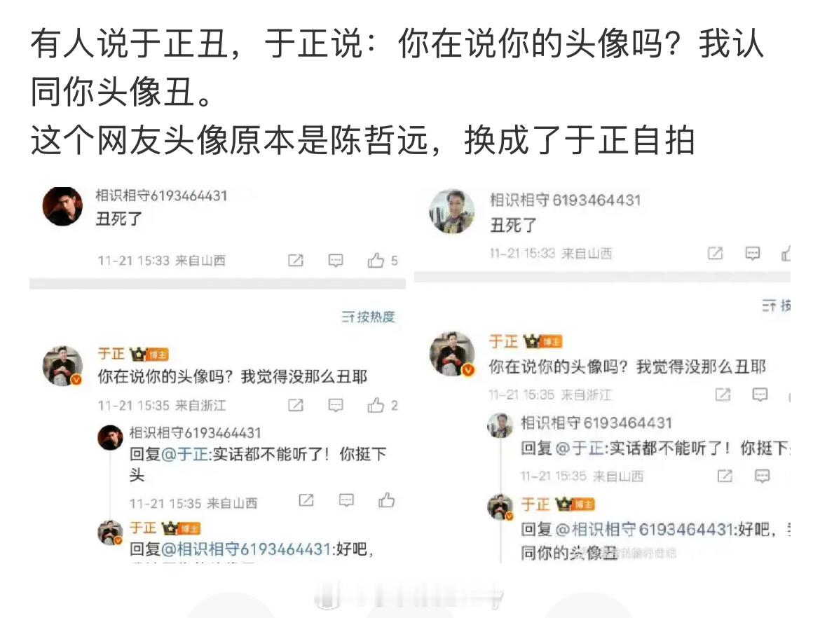 于正接受不了别人说他这张照片难看,还允许别人嫉妒