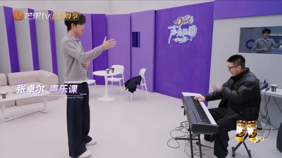 张卓尔训练室练《不遗憾》高音被声乐老师夸!老师说个高的很难能唱这么高的音,怪不得张凌赫唱歌像水牛哈哈哈