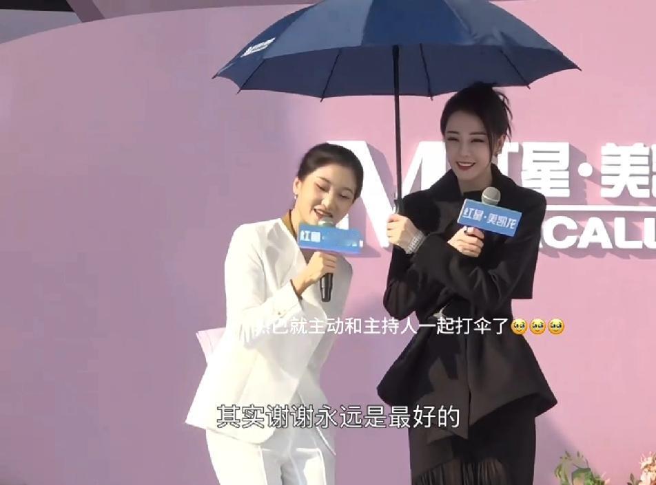 迪丽热巴和女主持人的互动好有爱,好默契!迪丽热巴没有顶流的傲娇和高冷,女主持人也是不卑不亢,落落大方……一把伞见证两个女生的美好和善意,迪丽热巴讲话时,主持人接过热巴手里的伞,并悄悄的往热巴那边挪过去,主持人讲话时,热巴又主动把伞接过来,也很自然的把伞往主持人那边偏……美好的人就是会有这么美好的小默契~~