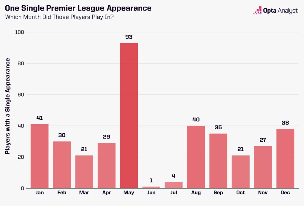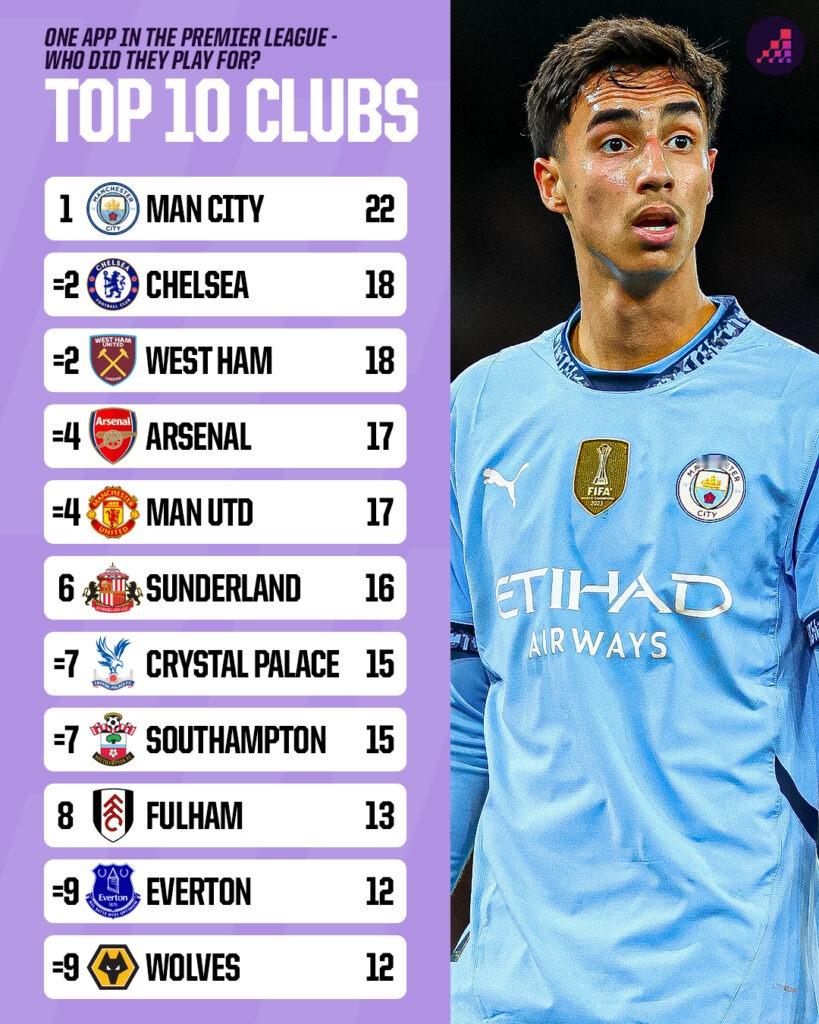11月23日(周日)将是英超历史上最具话题性的处子秀之一迎来29周年纪念日。当时身穿33号球衣的阿里·迪亚站在场边,即将在半场时替补受伤的南安普顿前锋马特·勒蒂西埃登场。英超历史上,很少有替补换人的双方球员在足球天赋上存在如此巨大的差距。迪亚再也没有踢过任何一场英超比赛。他甚至没能打完自己唯一的那场比赛——在对阵利兹的这场首秀,他遭遇了再次被换下场的尴尬境地。你们很多人可能已经知道背后的故事了。南安普顿主教练格雷姆·索内斯被一个自称是当时世界足球先生兼金球奖得主乔治·维阿表弟的人骗了。在这场短暂而狼狈的亮相后,这位塞内加尔前锋被球队解雇,再也没有出现在英格兰职业足坛。仅一次英超登场,便黯然离场。他或许是其中最糟糕的一位,但绝非唯一一位只在英超出场过一次的球员。截至撰写本文时,共有5068名球员至少有过一次英超登场经历。其中,380人(占7.5%)仅在该赛事中出场过一次。他们中的一些人未来可能会再次获得出场机会,但大多数人不会。这仅有的一次登场,让他们有权说自己曾是一名英超球员。这些“一球成名(仅出场一次)”的球员就像是英超世界里的临时演员。虽然他们在赛事历史中占有一席之地,但很少有人能起到重要作用。可以说,他们就像是酒吧场景中融入背景的临时演员。但也有少数人让自己变得令人难忘。当然,往往是因为一些不太光彩的原因。如果你的英超处子秀表现出色,你肯定会获得另一次机会,对吧?阿里·迪亚的例子就是如此。不过,只在英超踢过一场比赛并不一定意味着你是一名糟糕的球员。伊尔迪拉伊·巴斯图尔克曾代表布莱克本完成英超处子秀,在莫利纽克斯球场对阵狼队的比赛中首发登场,最终双方1-1战平,但他在半场时被换下,此后再也没有出现在英超赛场上。在此之前,他在德甲出场249次,代表勒沃库森参加了2002年欧冠决赛,并随土耳其队获得了2002年世界杯季军。同样,理查德·维茨格曾两次随巴塞罗那赢得西甲冠军,1992年获得欧洲冠军杯冠军,之后在1998年随阿贾克斯赢得荷甲冠军。但他仅在英超出场过一次——那是在1995年4月,代表布莱克本对阵西汉姆。费迪南德·科利2003年从法甲朗斯租借至伯明翰城,他的单场英超经历可能不会被伯明翰球迷铭记,但他是2002年塞内加尔队的关键成员——这支球队在世界杯上震惊了法国队,并获得了非洲国家杯亚军。甚至卡福……哦,等等,那是另一回事了。门将马特·默里因伤病残酷地断送了更长的足球生涯,他唯一的英超登场也是一场糟糕的经历。2003-04赛季狼队的首场比赛,他们在布莱克本以1-5惨败,这使得默里成为唯一一位仅在英超出场一次且遭遇如此惨败的门将。值得一提的是,他在这场唯一的英超比赛中完成了7次扑救,让人不禁想,如果没有这些扑救,比分可能会有多惨。另一场因不太光彩的原因而令人难忘的英超处子秀是克里斯蒂安·内古阿伊的经历。2004年节礼日,他在曼城对阵埃弗顿的比赛中于第81分钟替补登场,但几分钟后就因一次严重铲球被直接红牌罚下。这就是他的全部英超经历,此后他再也没有出现在该赛事中。直到今天,他仍是唯一一位在唯一的英超出场中被红牌罚下的球员。有四名球员仅在英超出场过一次,但都完成了令人难忘的处子秀进球,而且他们不太可能再出现在英超赛场上了。加里·布尔现在已经59岁了,所以可以肯定他不会离开“仅出场一次”的行列。在1995年1月2日诺丁汉森林1-0击败水晶宫的比赛中,他在自己唯一的英超登场中打入了制胜球。艾丹·纽豪斯在1992年10月3日温布尔登主场2-3不敌维拉的比赛中,于第23分钟替补登场并取得进球。他再也没有机会扩大自己的进球数,而现在53岁的纽豪斯,未来也不可能再做到了。克里斯·戴维仍在土耳其低级别联赛踢球,但尽管他只有32岁,却不太可能再增加自己的英超出场次数和进球数了。2014年5月,在富勒姆最后一轮2-2战平水晶宫的比赛中,他替补登场后打入了扳平比分的进球,这也是他唯一的英超出场。他还有一个强有力的理由声称自己是所有“仅出场一次”球员中进球最精彩的——他的进球是一记精彩的25码远射,击中横梁后入网。另一位仅在英超出场一次且取得进球的球员是乔希·哈罗普。2016-17赛季最后一轮对阵水晶宫的比赛中,曼联主教练何塞·穆里尼奥给了四名球员顶级联赛首秀的机会,哈罗普就是其中之一。当时穆里尼奥排出了红魔英超历史上最年轻的首发阵容(平均年龄22岁284天)。德米特里·米切尔和门将若埃尔·佩雷拉是另外两名完成曼联处子秀的球员——他们两人也再也没有踢过英超。而第四位球员斯科特·麦克托米奈,我们只能说他后来的表现相当不错。安赫尔·戈麦斯也在16岁时以替补身份完成了英超处子秀,但之后又在该赛事中出场了四次。有一位球员曾有绝佳机会加入这个名单,他就是卢卡斯·皮亚松。这位巴西人唯一的英超出场已经过去了将近12年。在切尔西8-0大胜保罗·兰伯特执教的维拉的比赛中,他替补登场,助攻埃登·阿扎尔打入切尔西的第七球,随后在被犯规后获得了点球机会,有望在处子秀中进球,但他的射门被布拉德·古赞扑出。在所有“仅出场一次”的球员中,代表曼城出场的球员最多,共有22人。不过,大多数球迷预计最近两位球员——维托尔·雷斯和克劳迪奥·埃切维里——未来还会有出场机会。紧