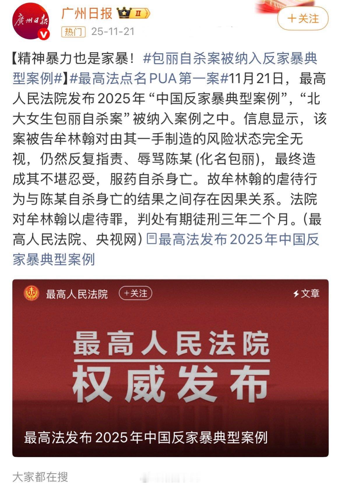 北大牟林翰案纳入最高法中国反家暴典型案例。该案例首次明确:“精神暴力”也是家暴。 陕西男子结婚当天跳河自杀那事,算不算精神暴力? 是不是也适合入刑? 结果只是女方退还彩礼六金,没有任何赔偿和惩处。