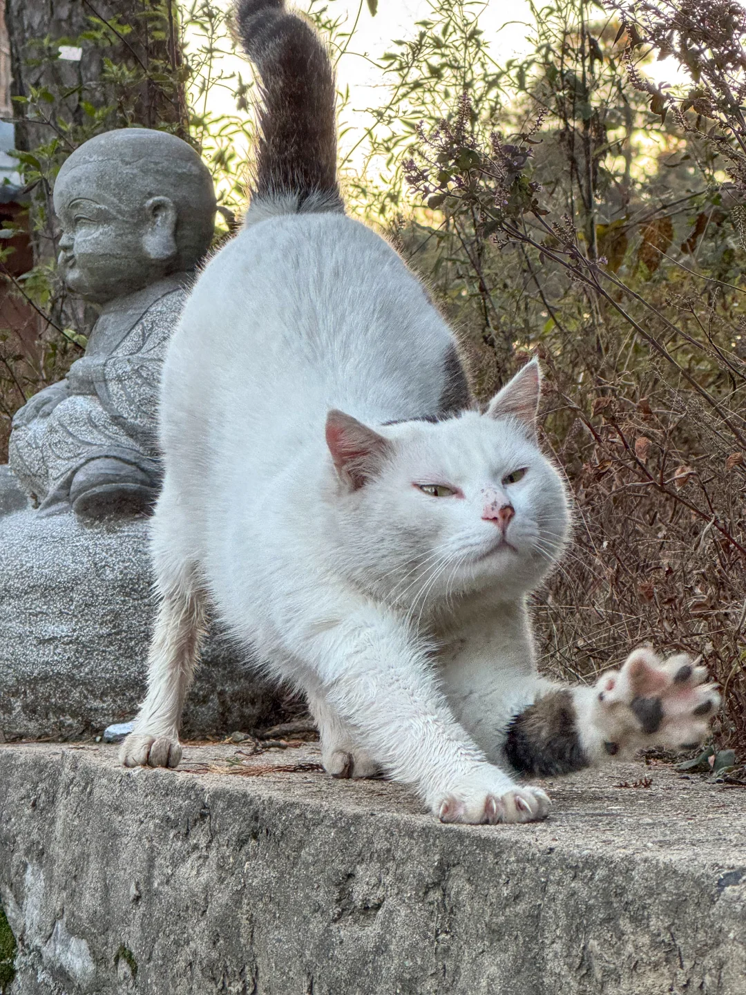 图1-4芦林湖附近。 图5-7同胞四兄弟白猫。 图8-9遇到抓鸟失败的小橘。 图10庐山遇到的第一只猫。 图11-13陪小和尚念经的喵。 图14烤肠店门口值班猫咪。