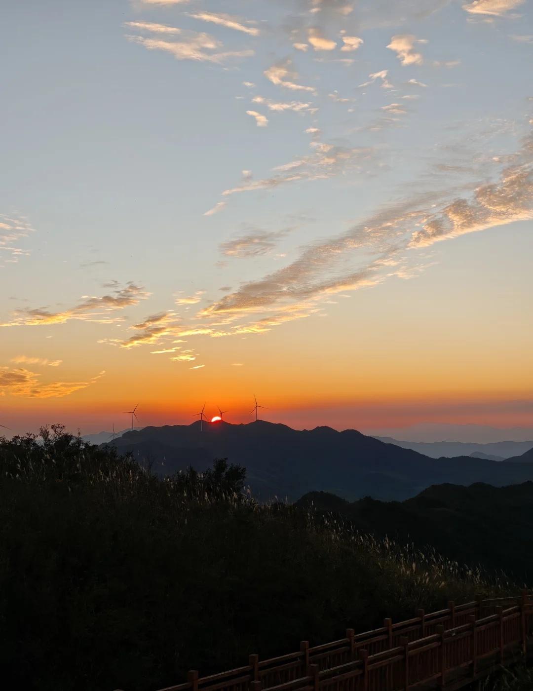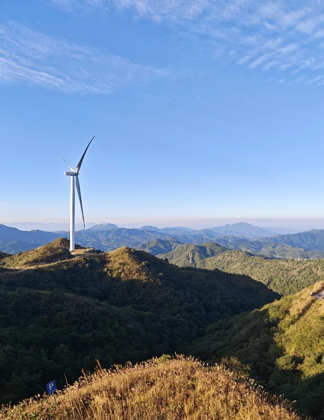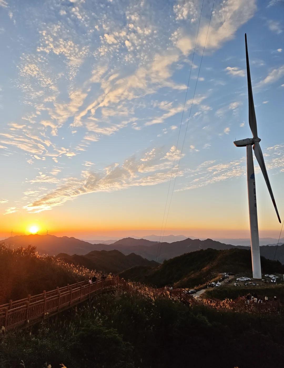 错过了红尖山的云海日落,还可以追上红尖山的云海日落啊!这也算是一场难得一遇的视觉大餐。红尖山海拔1412米,开车能直接到山顶,导航直接搜索“必头歧”,开车可以直接到山顶,这是个绝佳的观望地。 最近龙岩一会儿降温一会儿回温,本周末天气总算是个大晴天。那就赶紧出发吧,站在红尖山上,下车后,看着面前巨大的大大风车,恐高心理人都开始犯怵啦。但等到5点半左右,你会感叹,夕阳无限好,看那云海飘飘悠悠的,高低错落的群山就像一幅写意画。夕阳西下时,金色阳光穿过云雾,洒在连绵的群山上,美到让人挪不开眼。大家都是拿出手机相机,不停咔嚓咔嚓,都不想错过那红尖山的云海落日,那场景,就跟大自然精心画的绝美油画似的。这么棒的景色,真得找个时间去看看。 和风一起捕捉山顶的风景