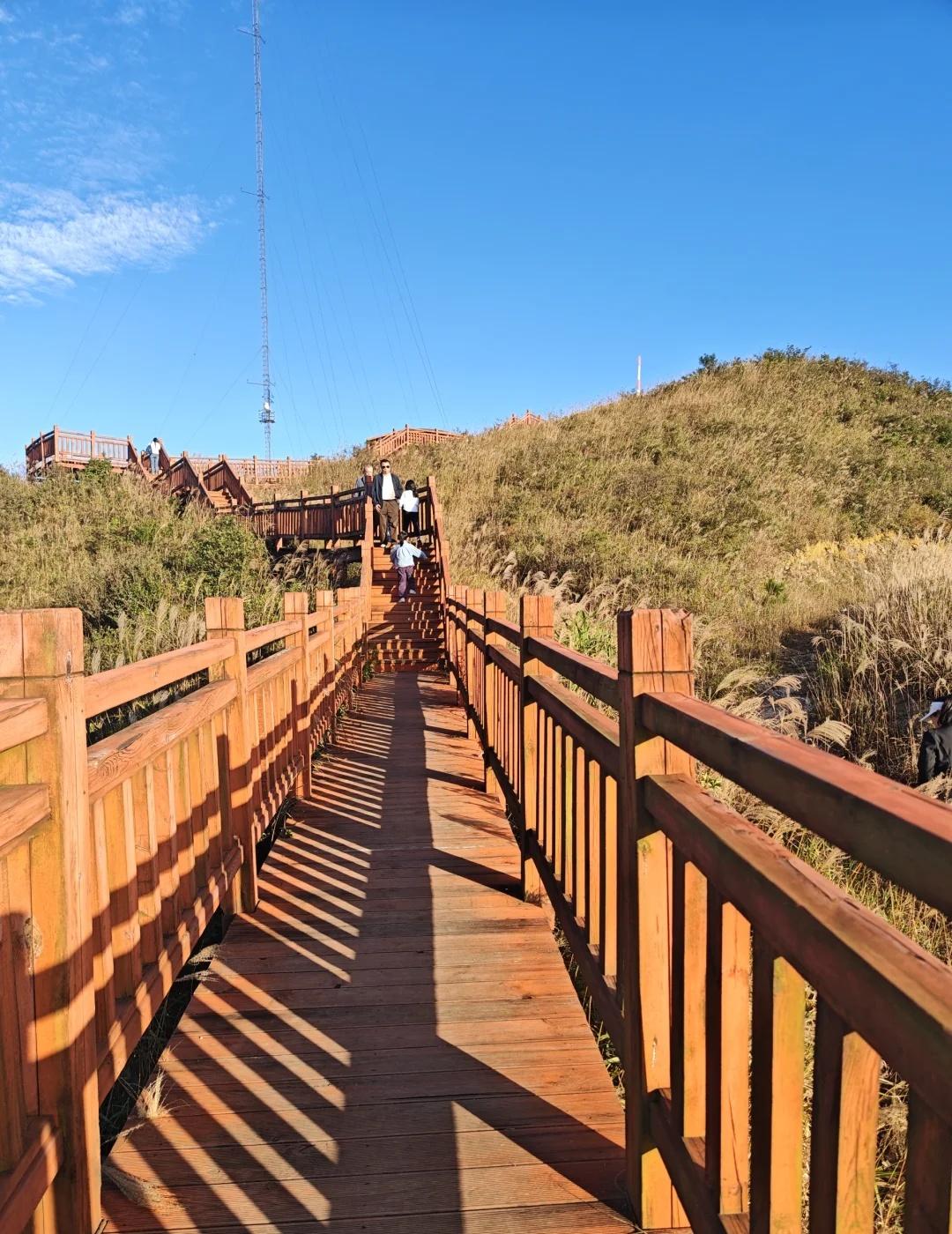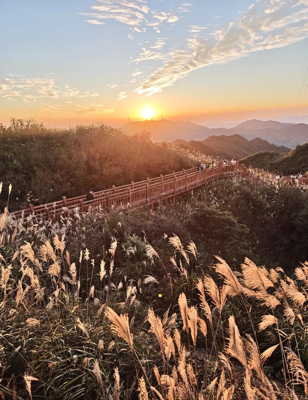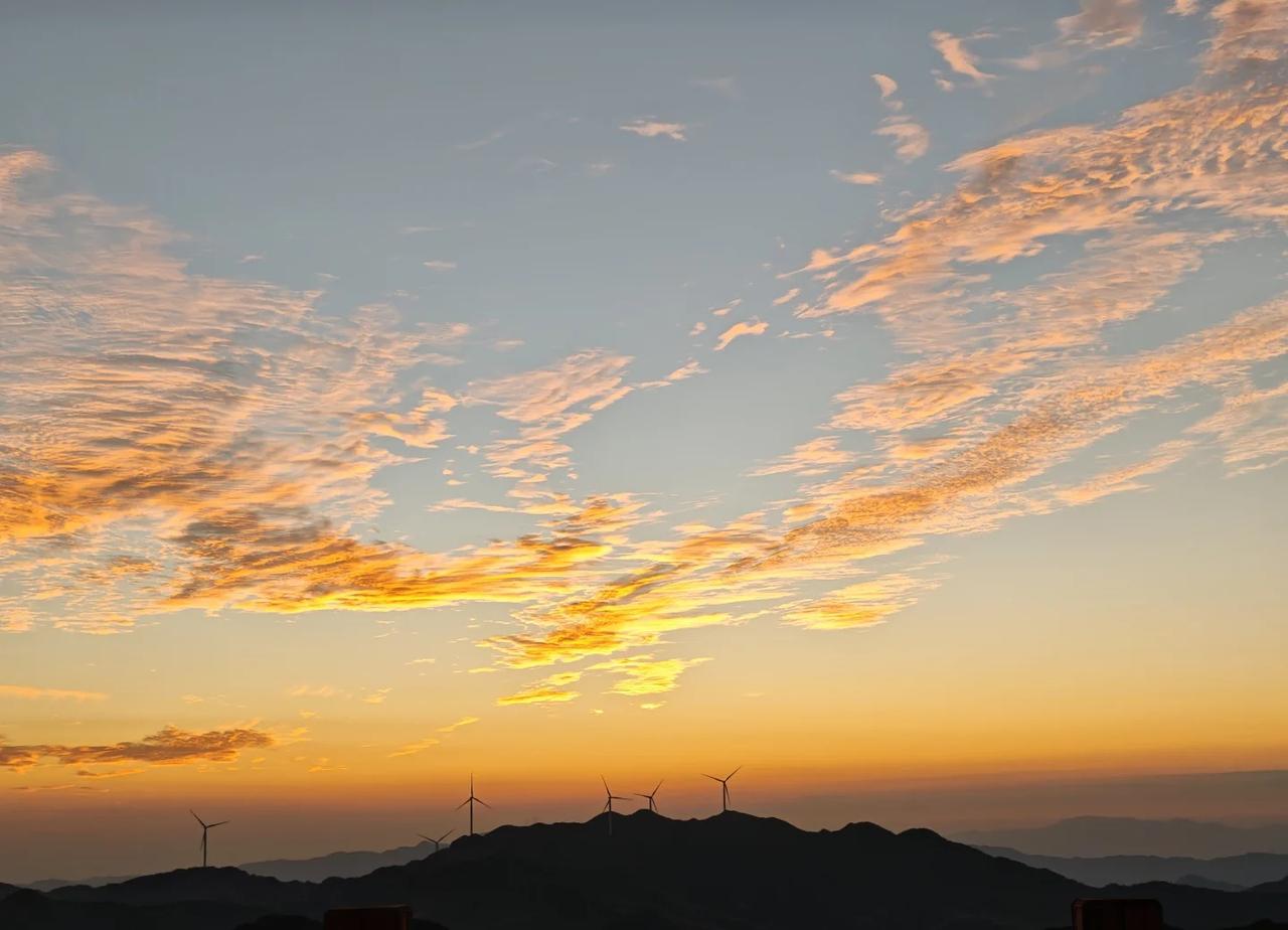 错过了红尖山的云海日落,还可以追上红尖山的云海日落啊!这也算是一场难得一遇的视觉大餐。红尖山海拔1412米,开车能直接到山顶,导航直接搜索“必头歧”,开车可以直接到山顶,这是个绝佳的观望地。 最近龙岩一会儿降温一会儿回温,本周末天气总算是个大晴天。那就赶紧出发吧,站在红尖山上,下车后,看着面前巨大的大大风车,恐高心理人都开始犯怵啦。但等到5点半左右,你会感叹,夕阳无限好,看那云海飘飘悠悠的,高低错落的群山就像一幅写意画。夕阳西下时,金色阳光穿过云雾,洒在连绵的群山上,美到让人挪不开眼。大家都是拿出手机相机,不停咔嚓咔嚓,都不想错过那红尖山的云海落日,那场景,就跟大自然精心画的绝美油画似的。这么棒的景色,真得找个时间去看看。 和风一起捕捉山顶的风景